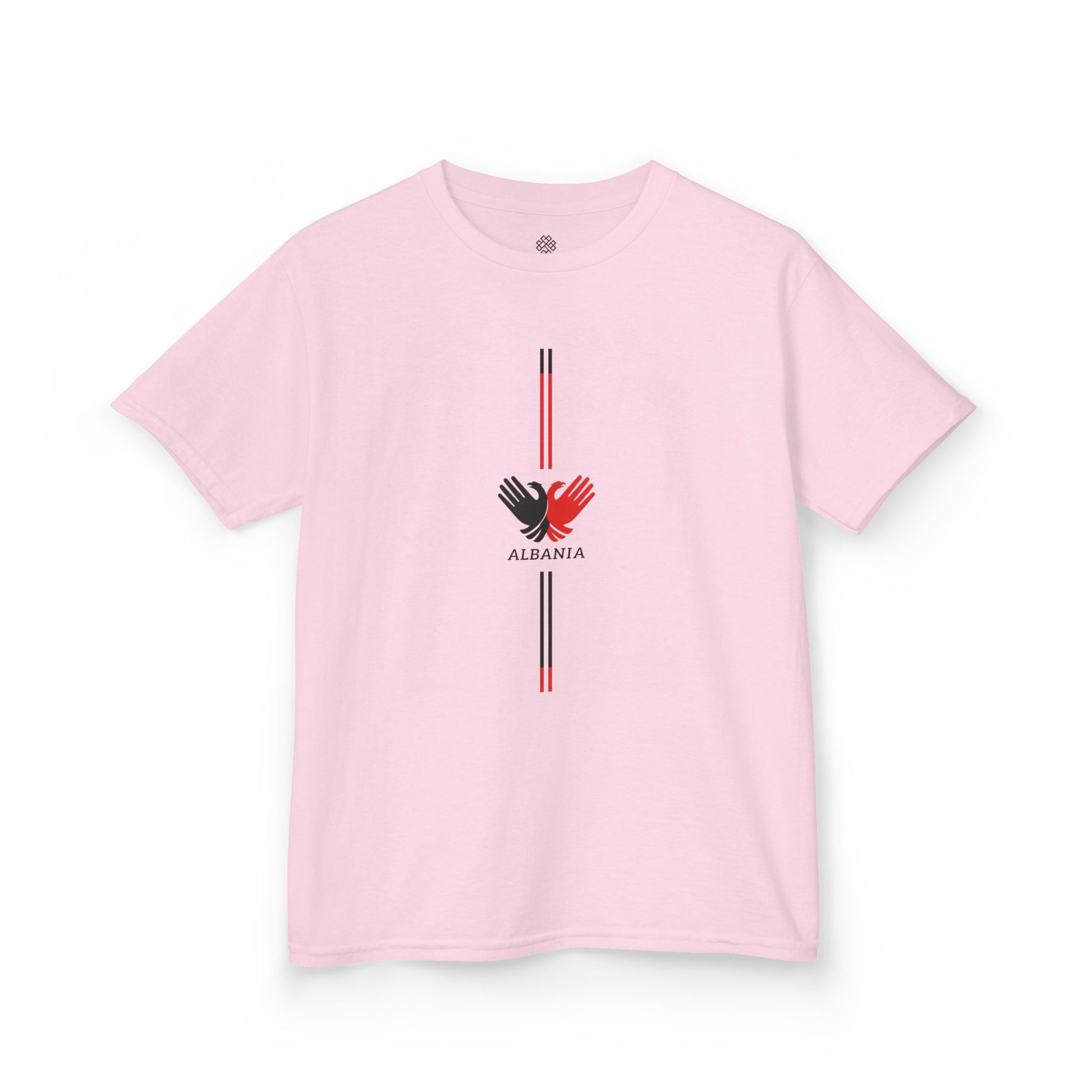 Albanian Kids T-Shirt - Hand Eagle Symbol with Stripes | Heritage Pride Tee Fun - Shqipe