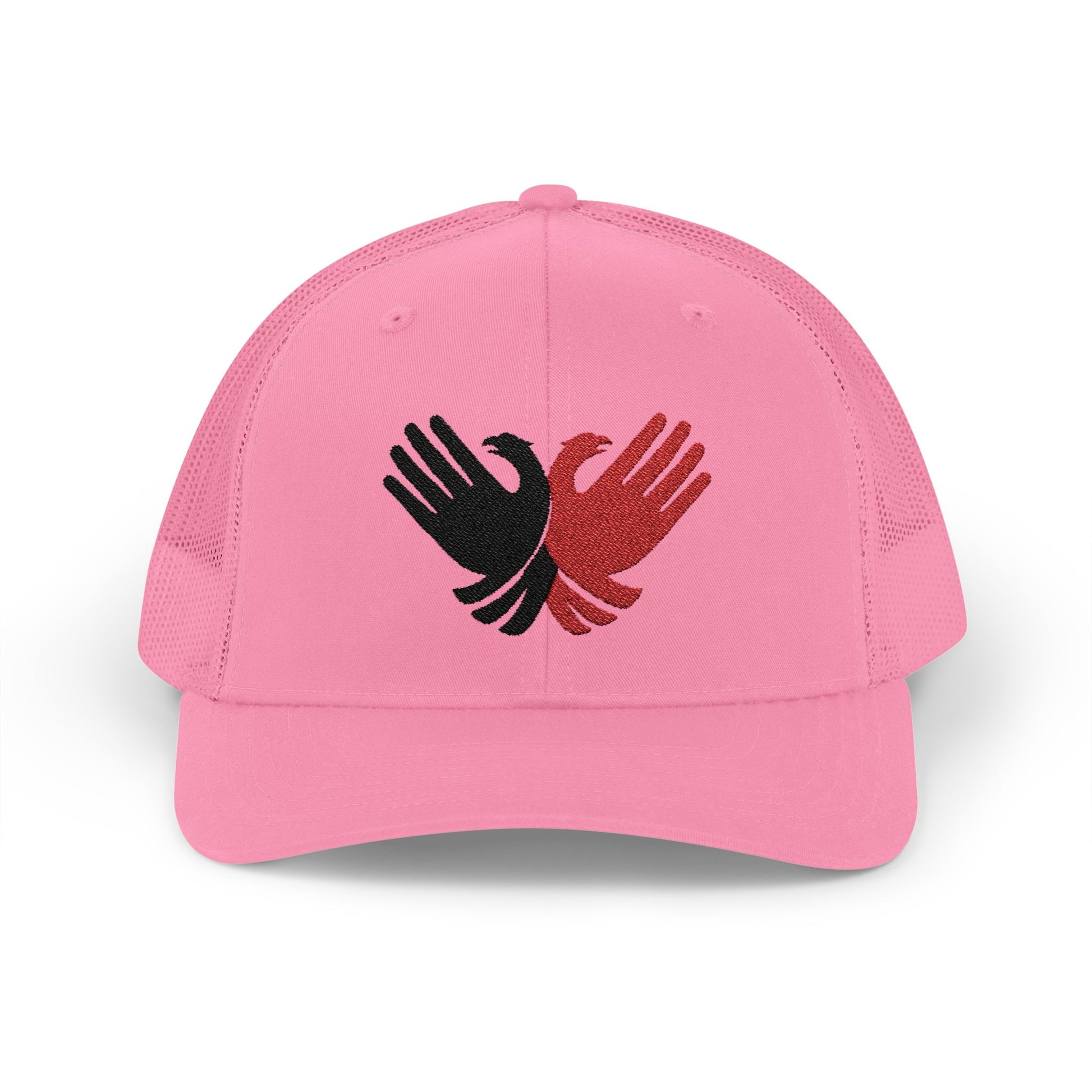 Albanian Pride Trucker Hat - Crossed Hands Double-Headed Eagle Design