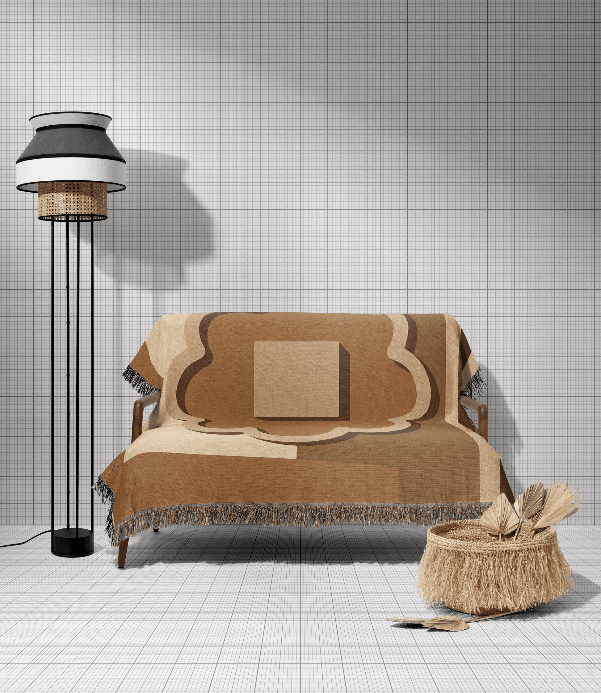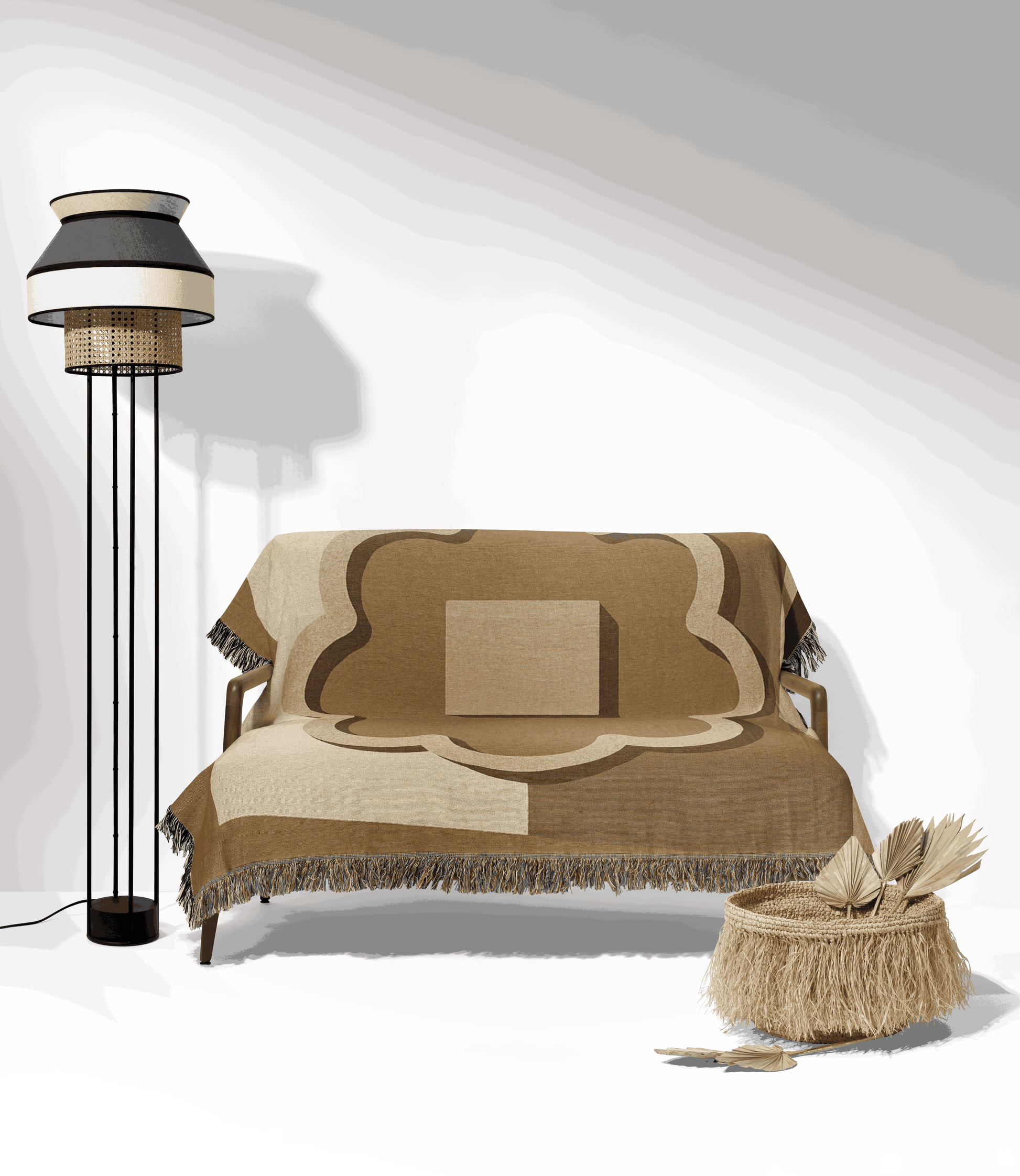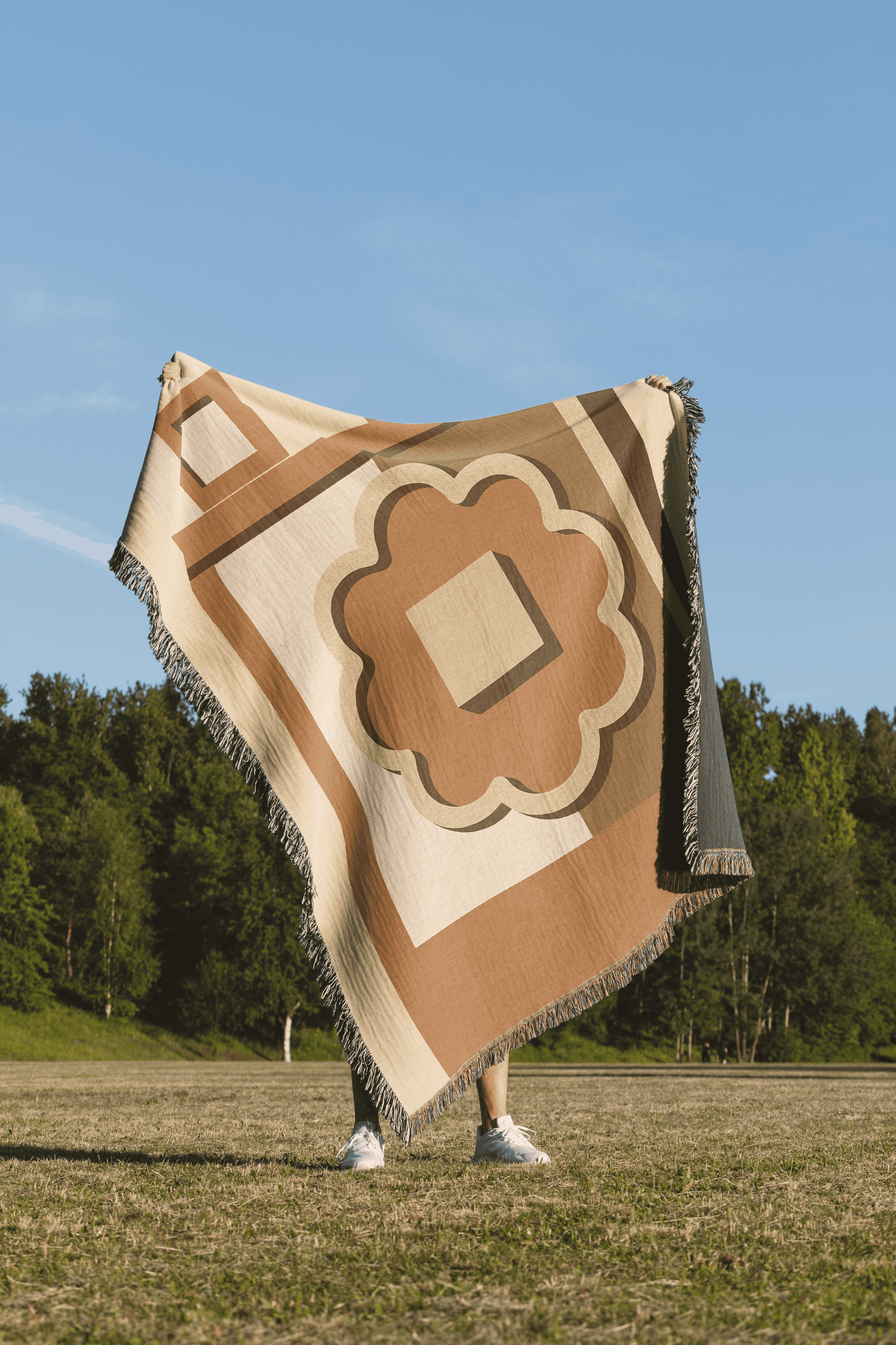 Bring timeless elegance into your living space with this warm and earthy woven throw inspired by the ancient city of Ulpiana. Featuring a minimalist abstract design in soft beige, terracotta, and taupe tones, the central motif nods to ancient stonework and Illyrian-Roman architectural patterns. The layered shapes and gentle symmetry evoke cultural depth while maintaining a modern, boho-chic aesthetic.