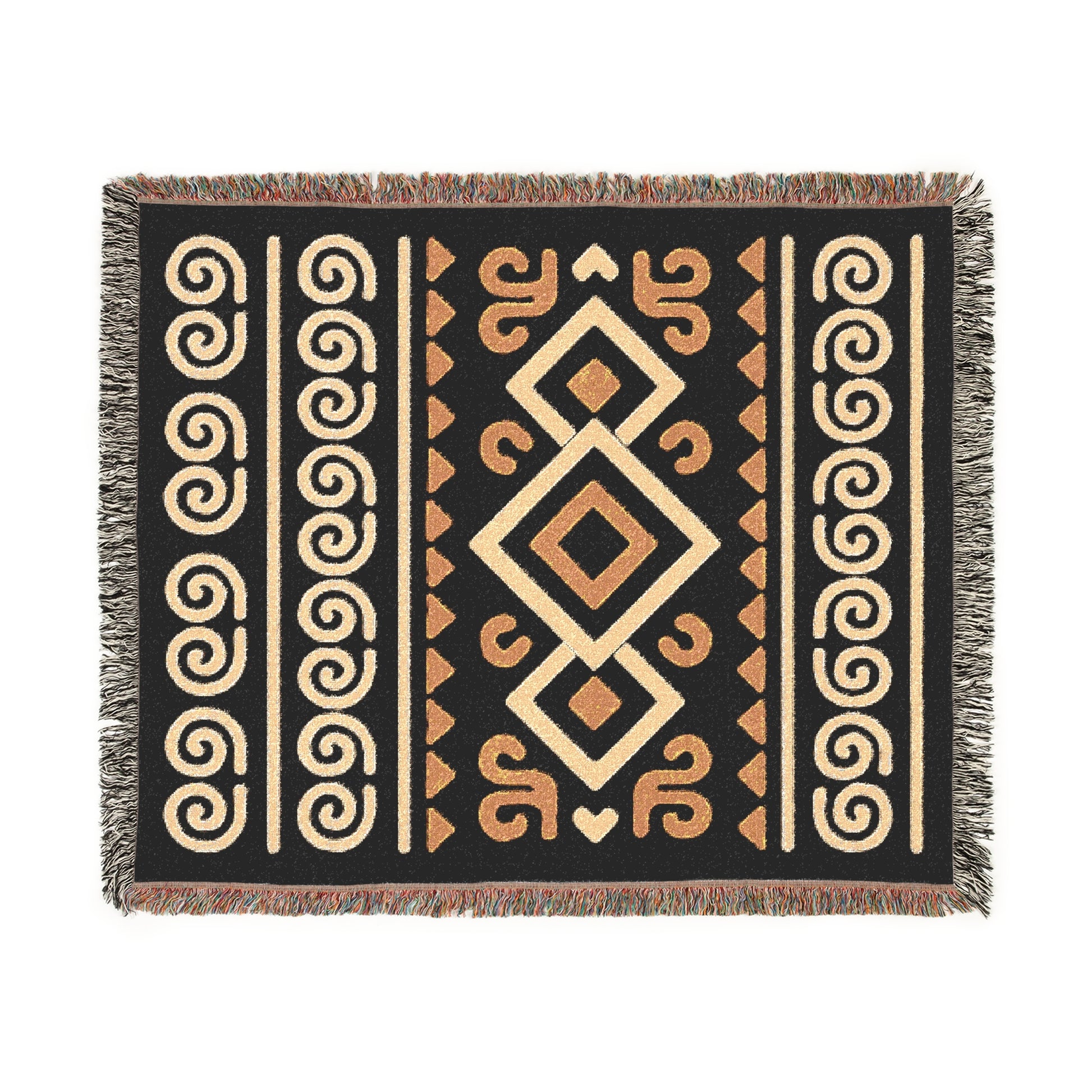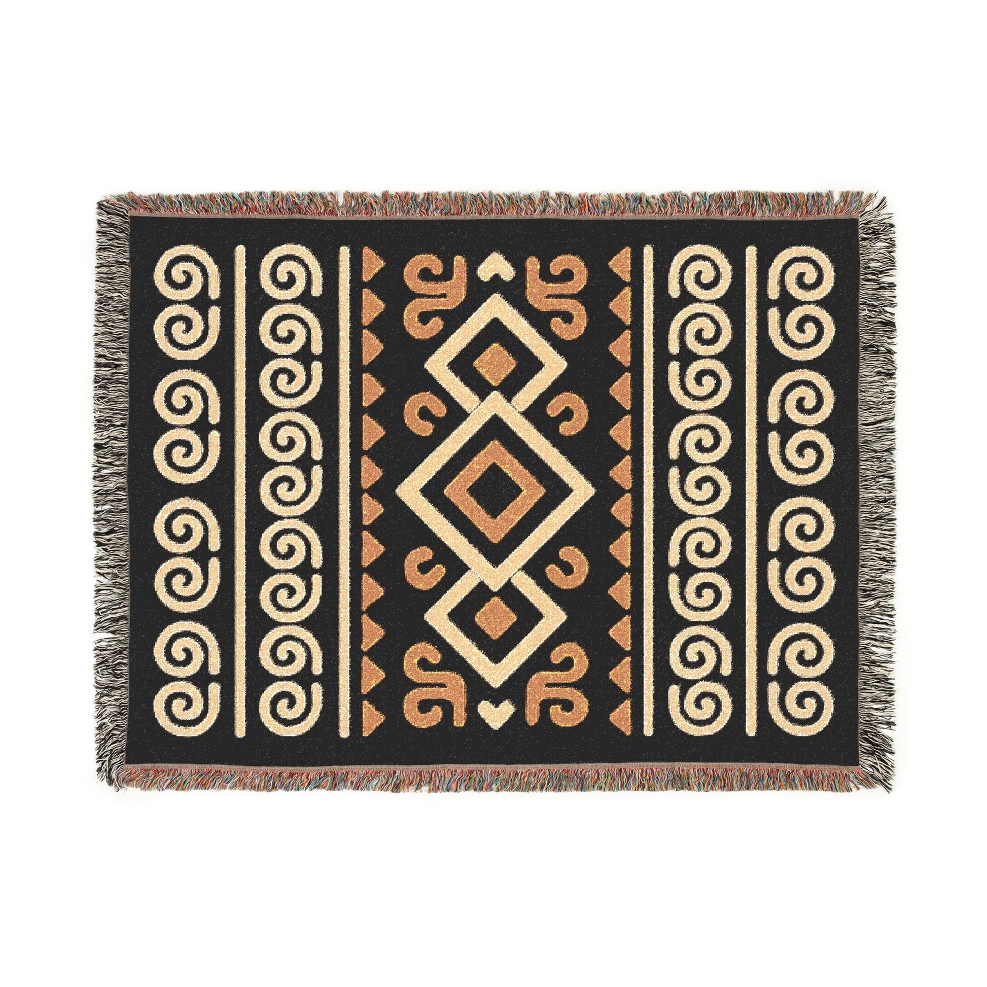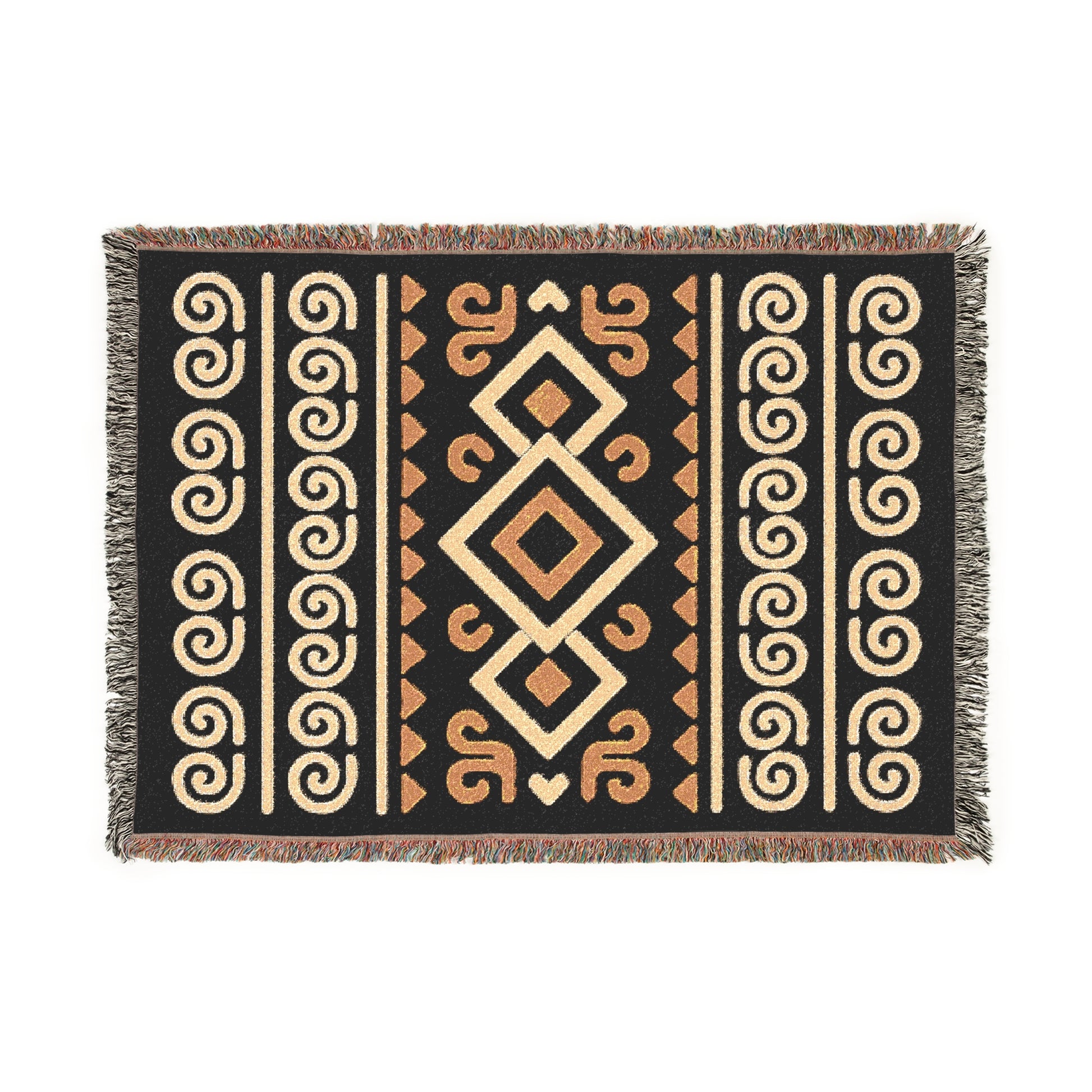 Black, Gold & Cream Boho Diamond Spiral Woven Throw Blanket - Illyrian Weave