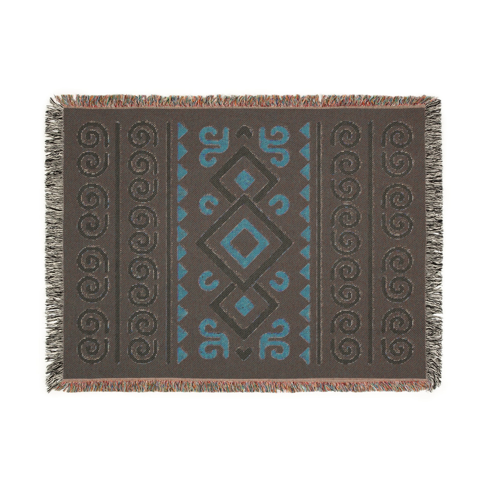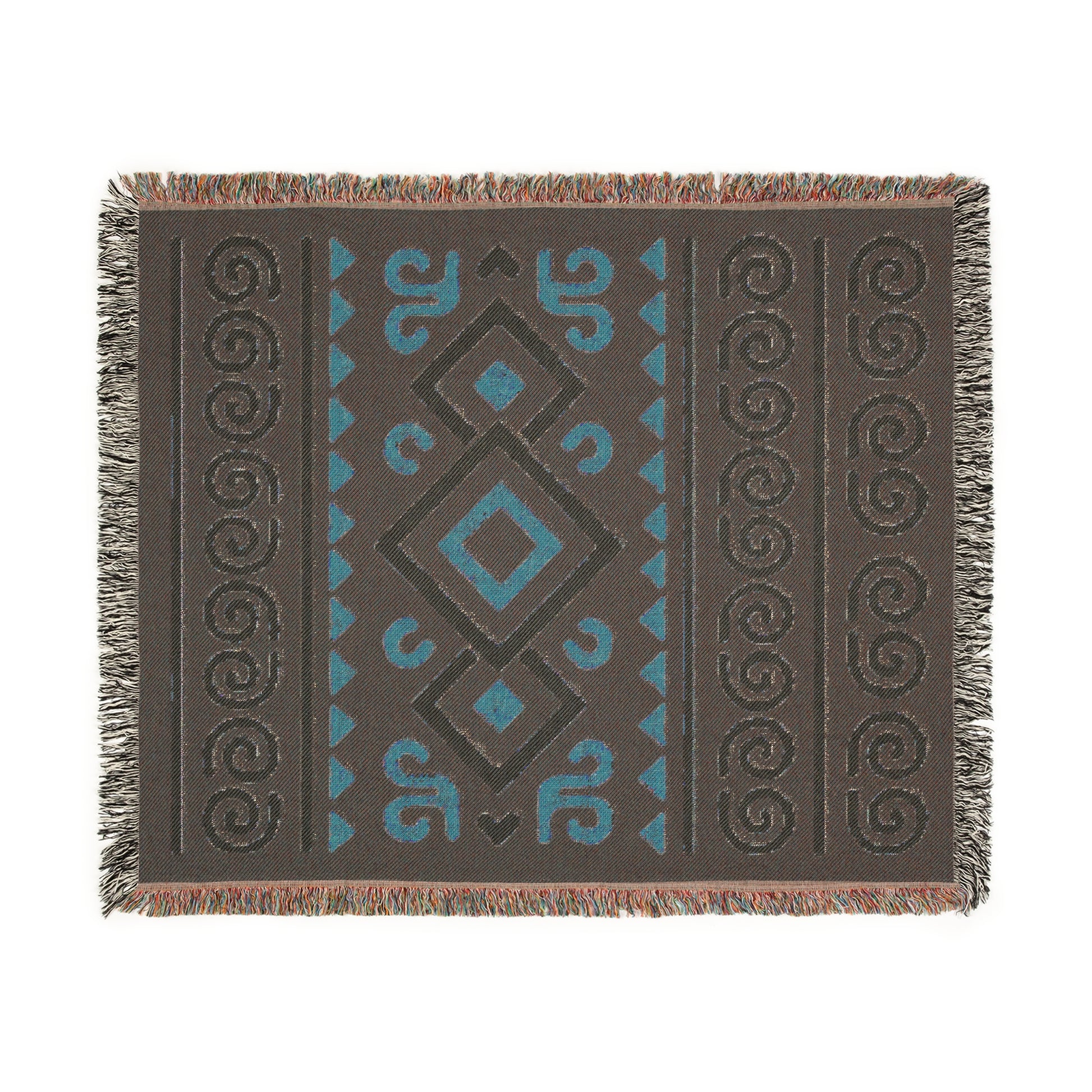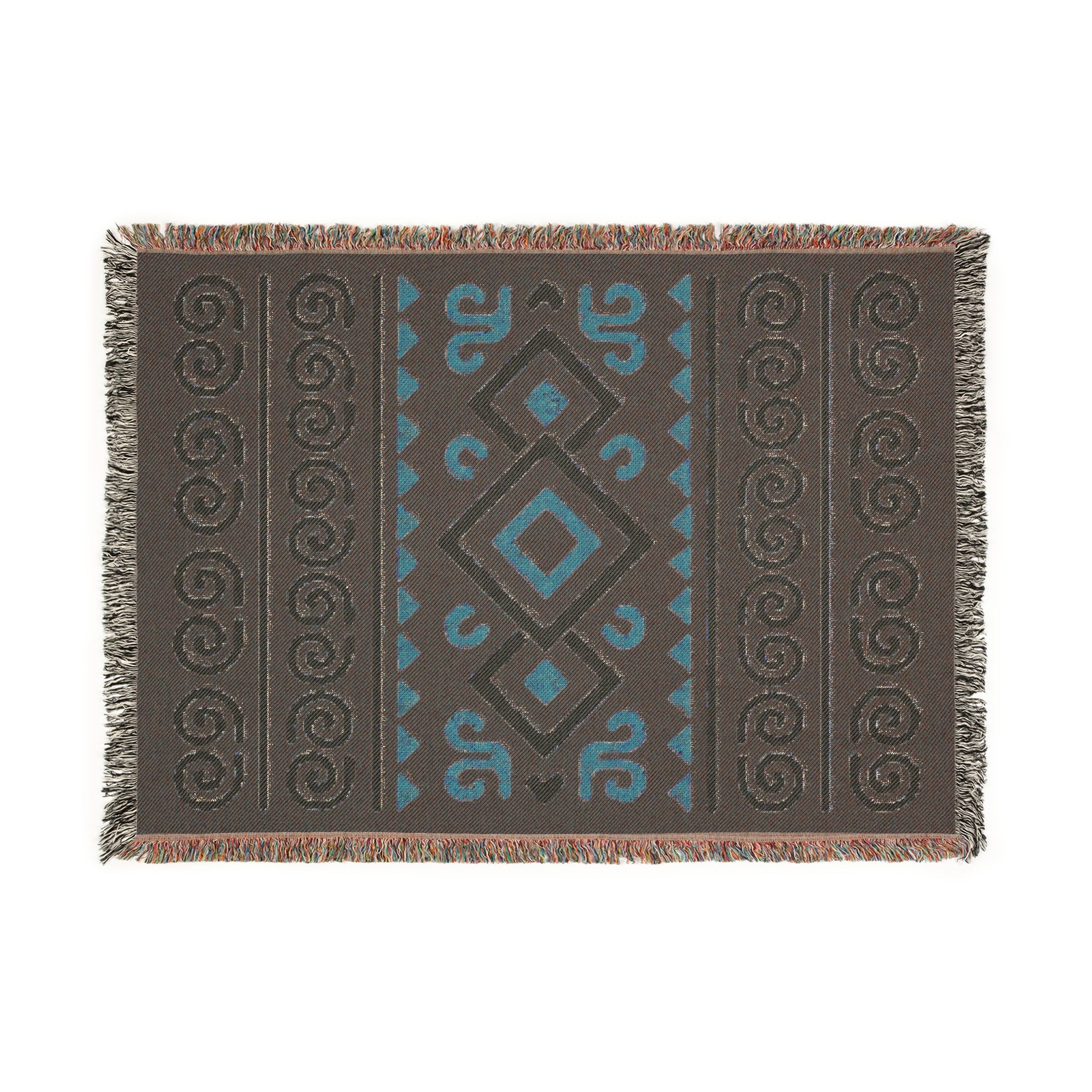 Black, Gold & Cream Boho Diamond Spiral Woven Throw Blanket - Illyrian Weave