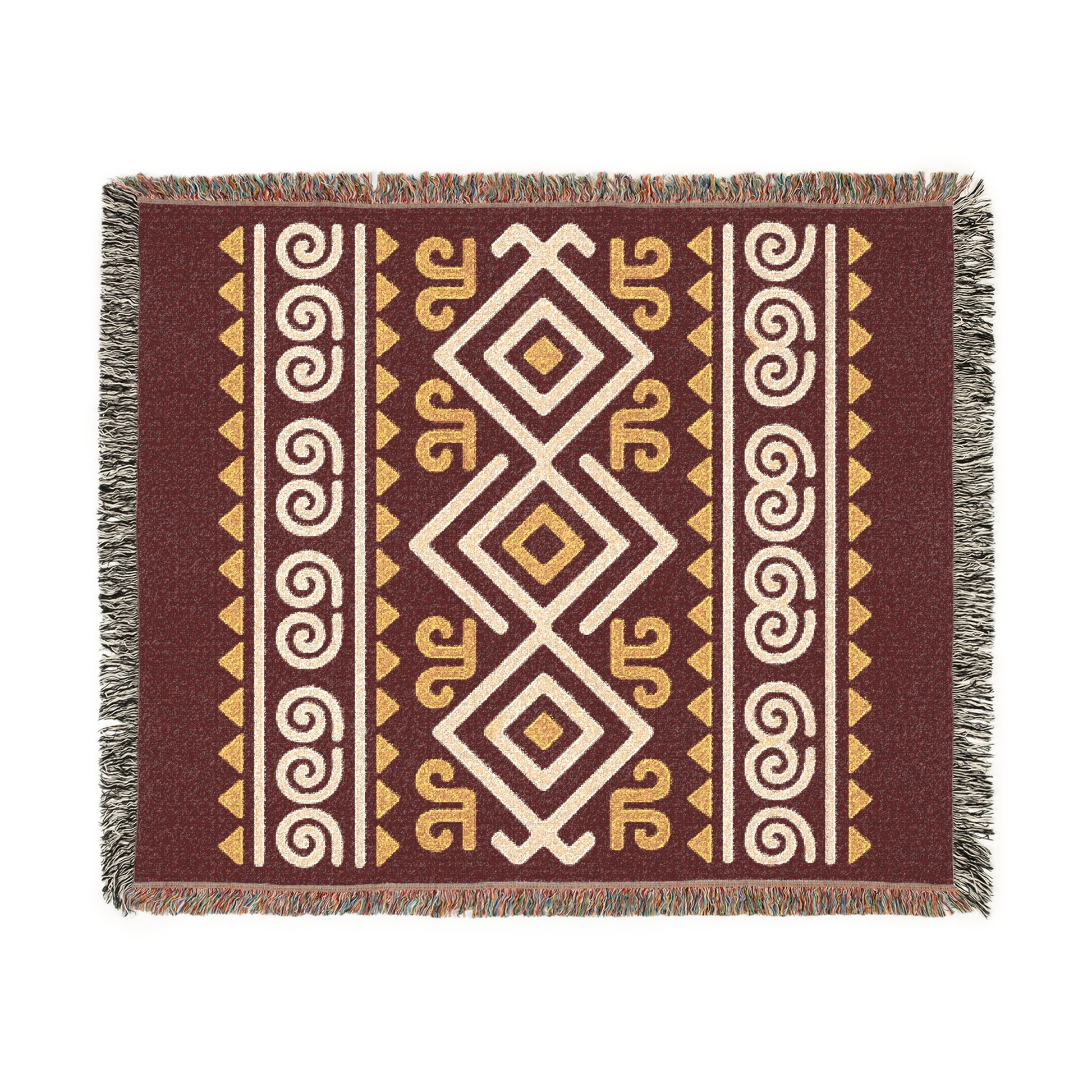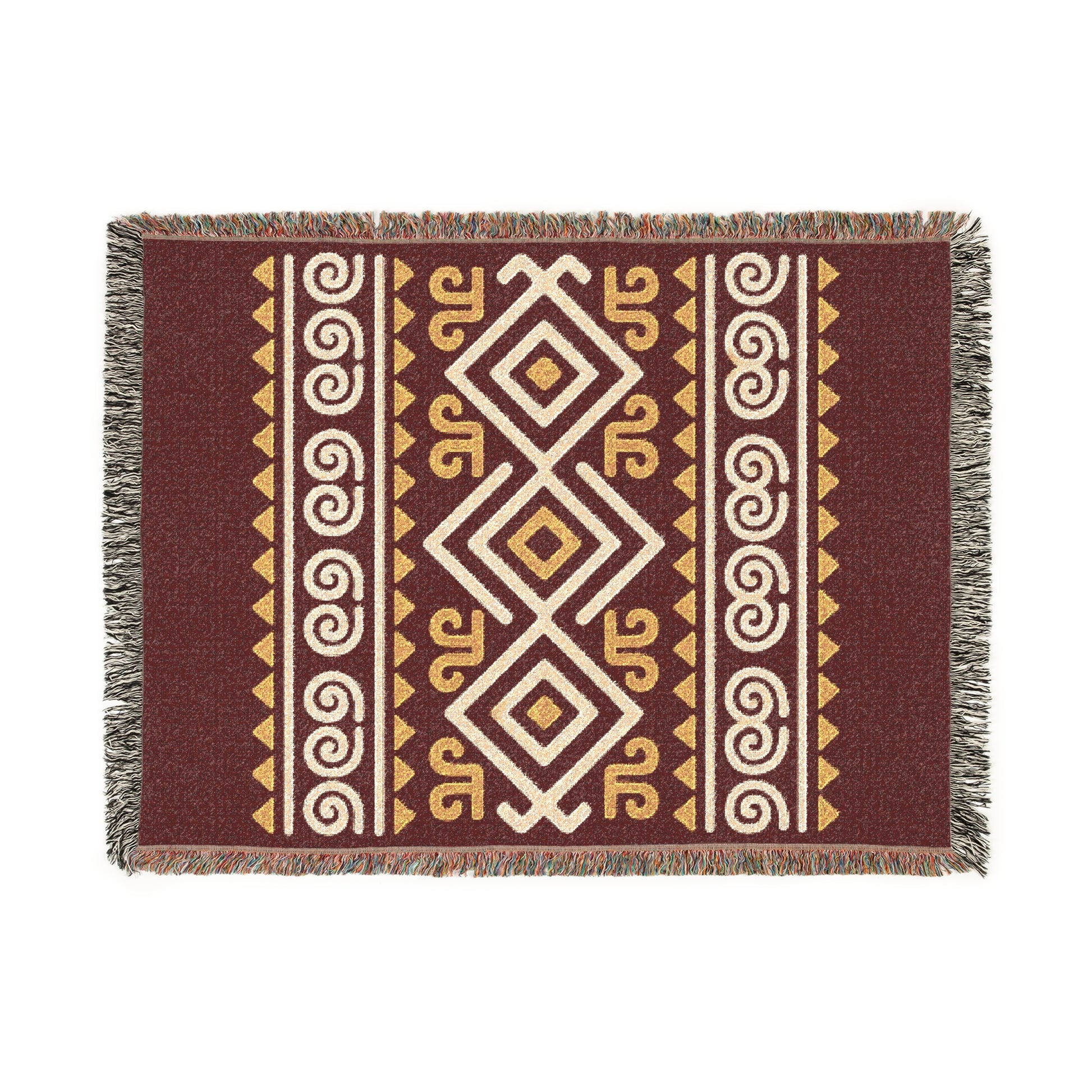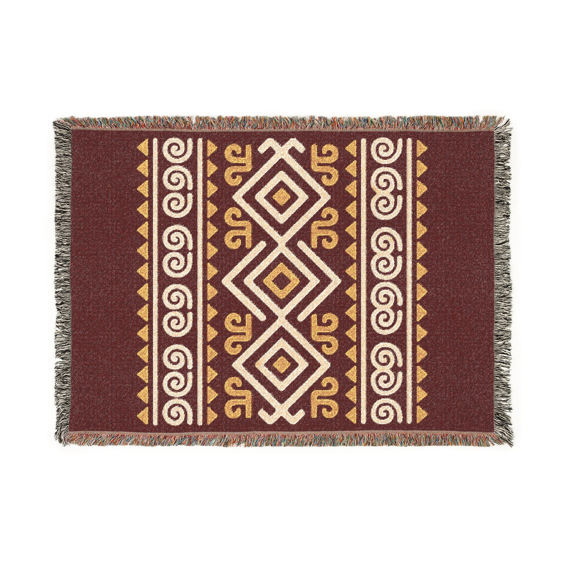 Burgundy, Gold & Cream Boho Tribal Diamond Woven Throw Blanket - Illyrian Weave
