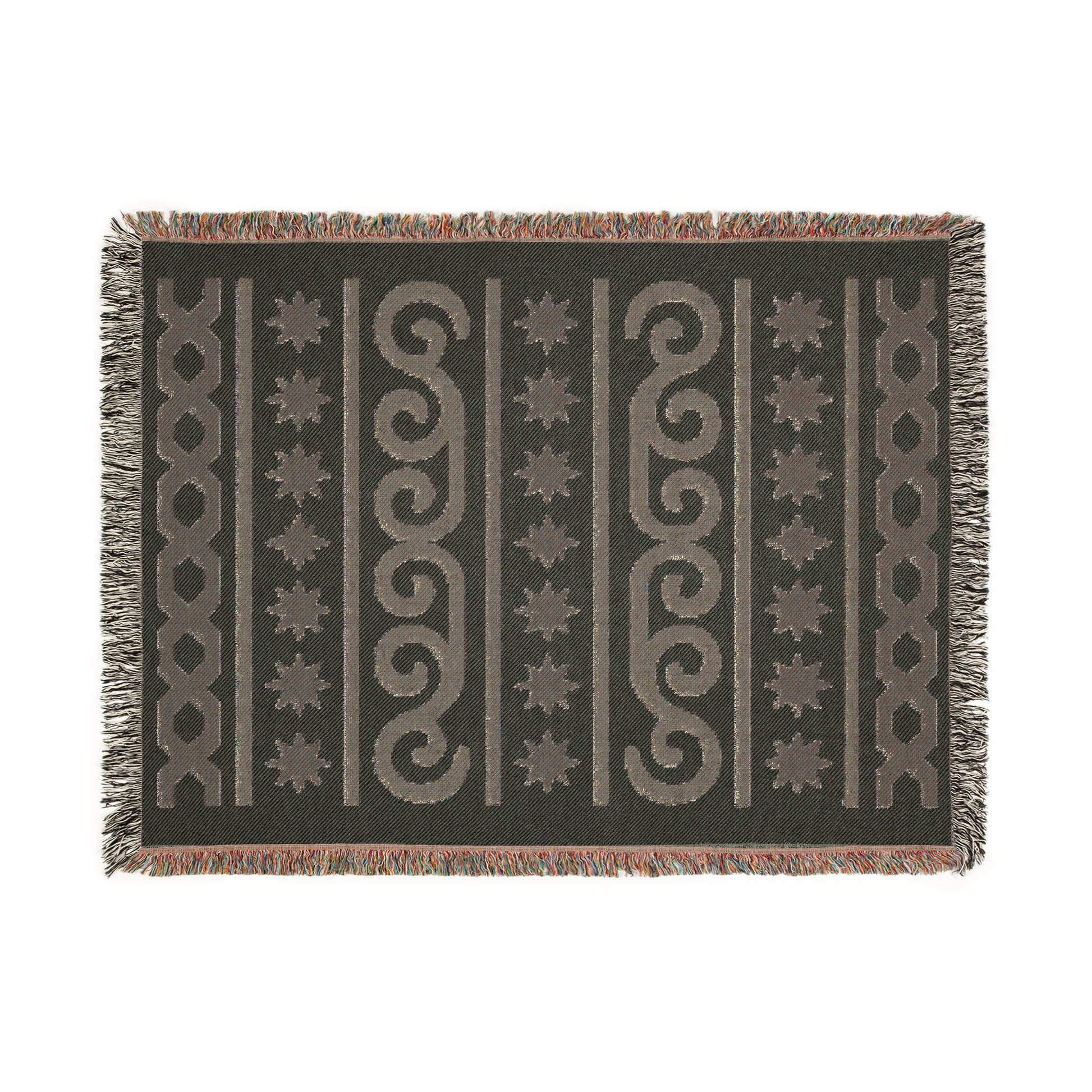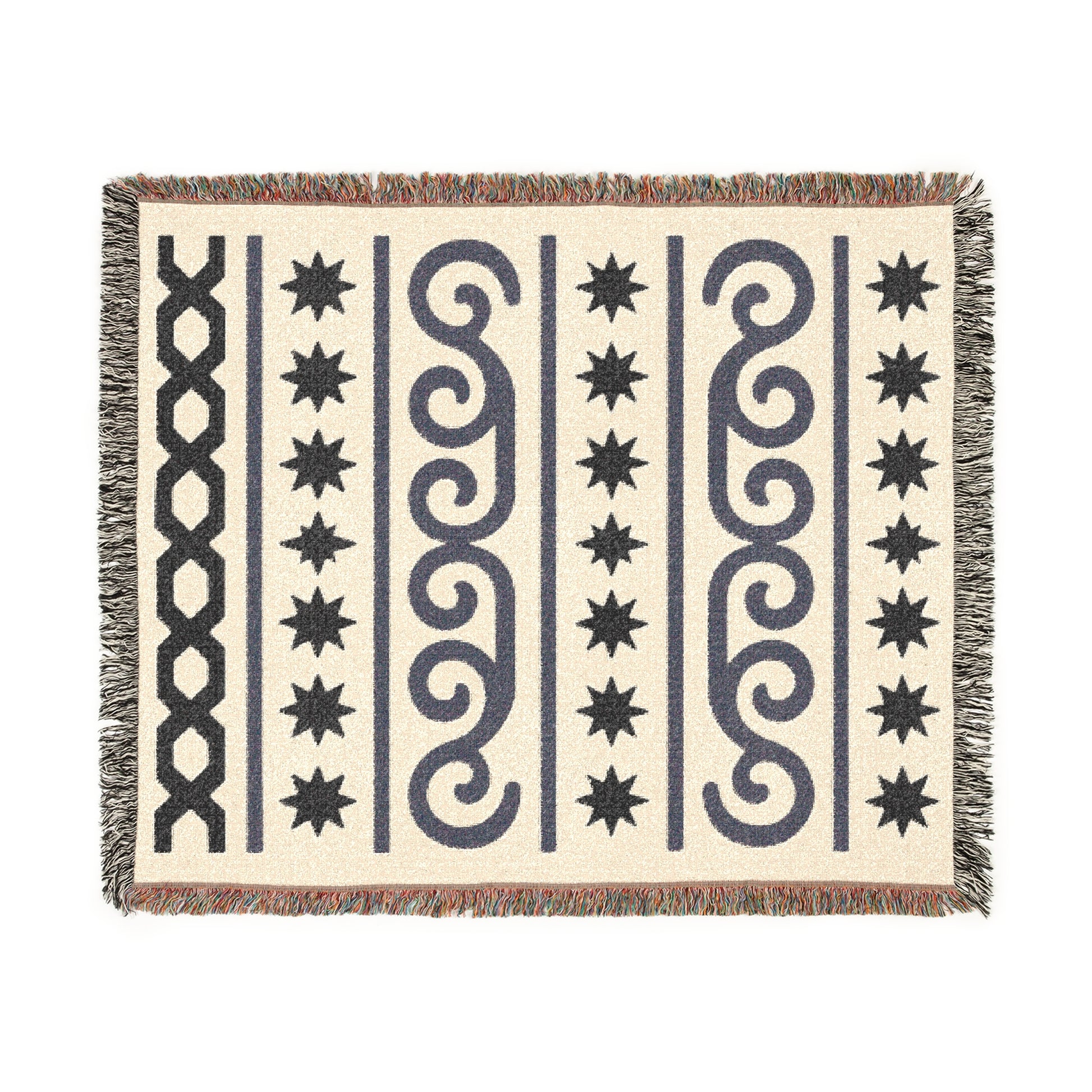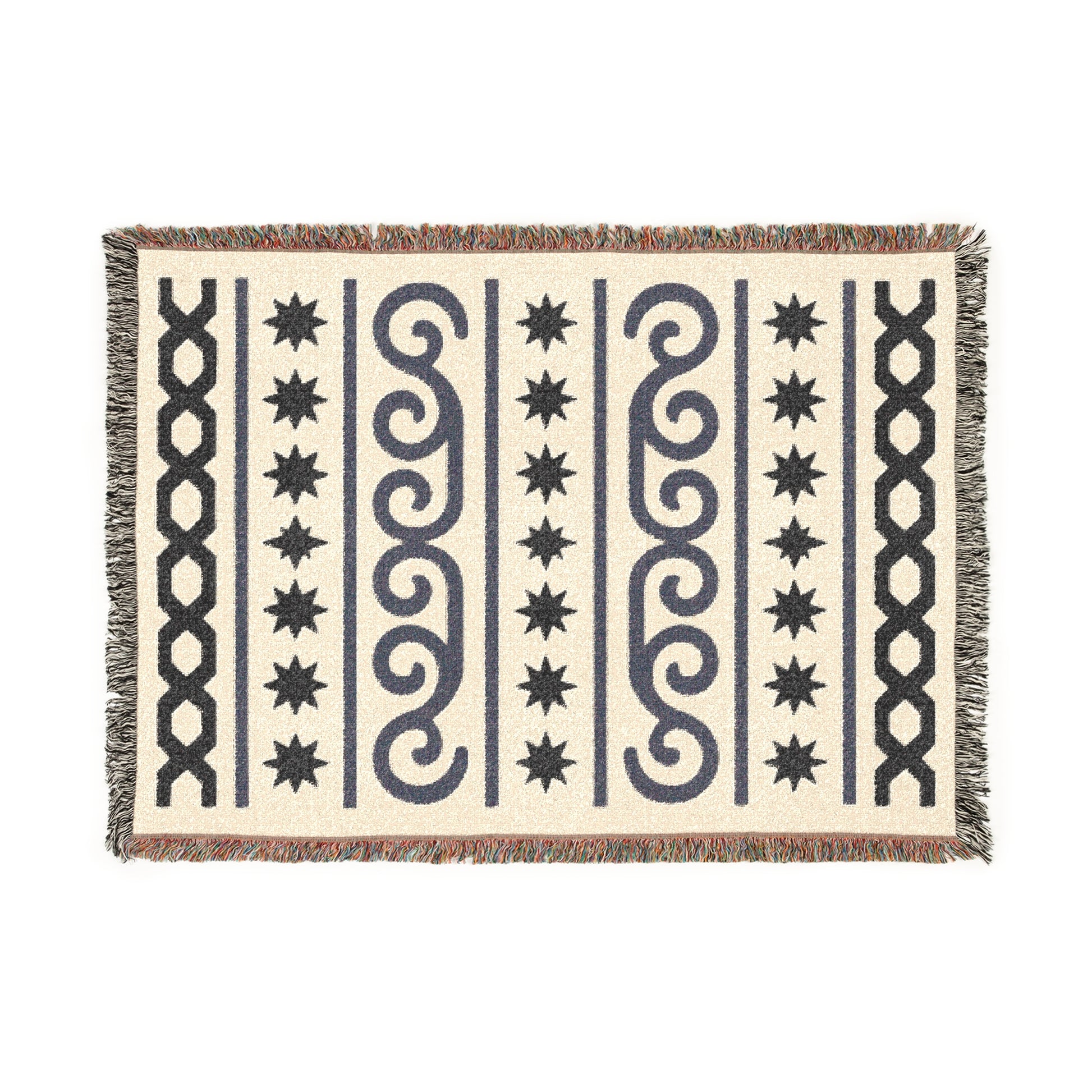 Cream & Charcoal Boho Star and Wave Woven Throw Blanket - Illyrian Weave