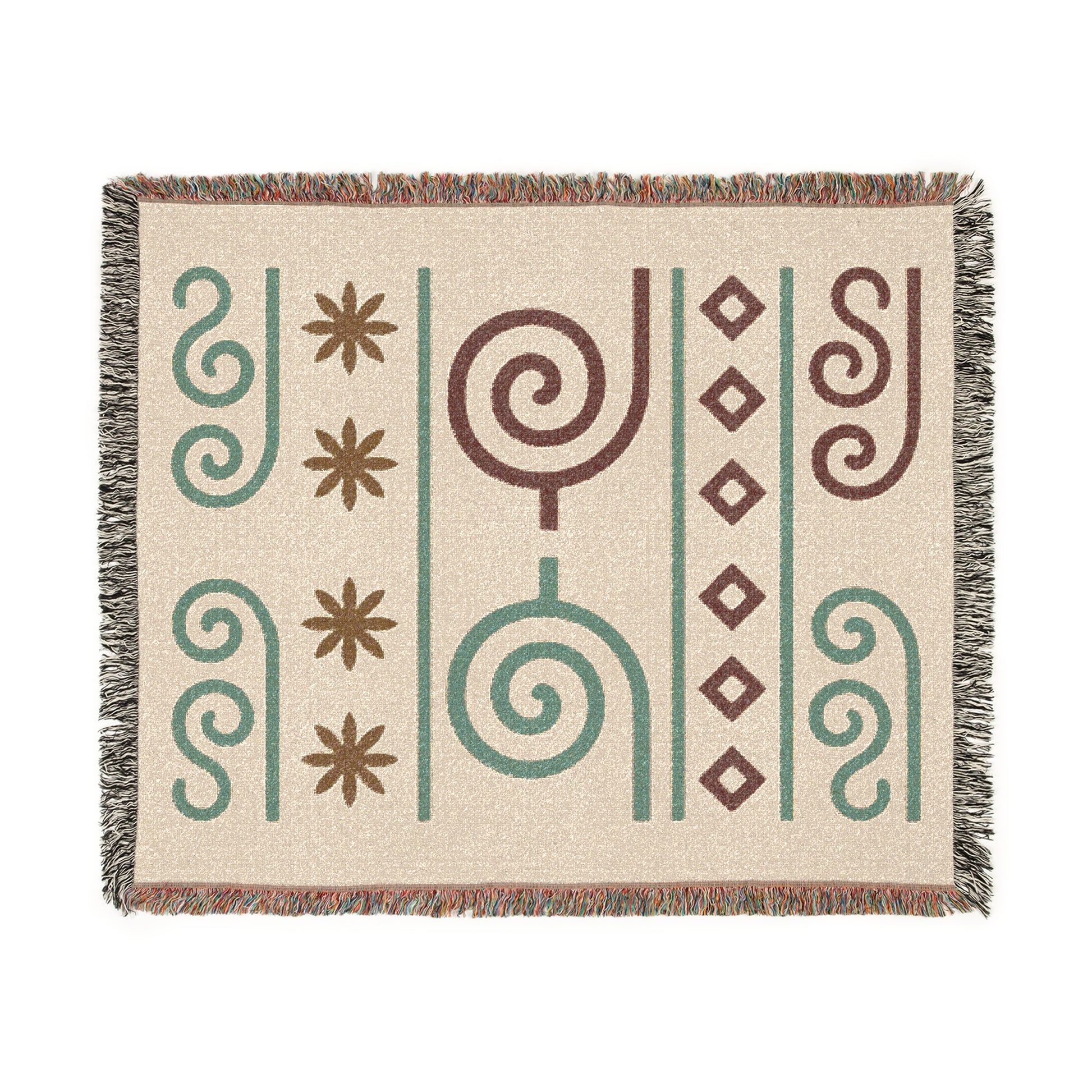 Inspired by ancient Illyrian geometry, this woven throw combines soothing cream tones with teal, cocoa brown, and earthy olive motifs arranged in a rhythmic, heritage-inspired layout. Spirals, star-flower shapes, diamonds, and flowing wave lines come together in a harmonious boho design that brings warmth, movement, and cultural depth to any room. Soft, durable, and beautifully textured, it layers effortlessly over your sofa, bed, or reading chair. Expertly woven from premium cotton, it blends timeless craftsmanship with everyday comfort and remains fully machine-washable for easy care.