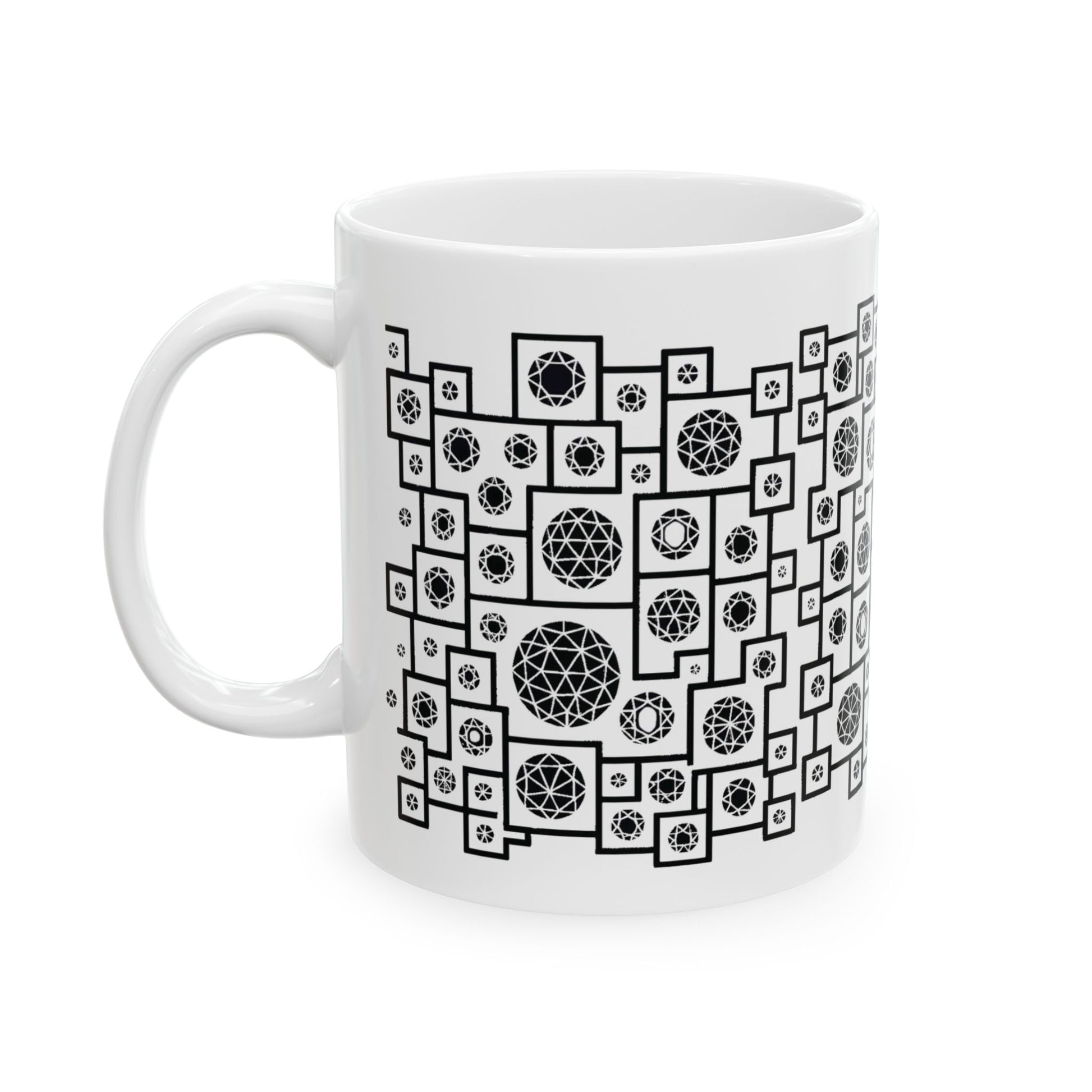 Sip your coffee or tea with a touch of cultural elegance. This stunning ceramic mug showcases the iconic National Library of Kosovo, known for its mesmerizing, domed architecture inspired by the traditional Plis – a symbol of Albanian identity and pride. The intricate network of domes and geometric patterns reflects a blend of modern design with deep cultural heritage, making this mug a perfect keepsake for anyone connected to Kosovo.