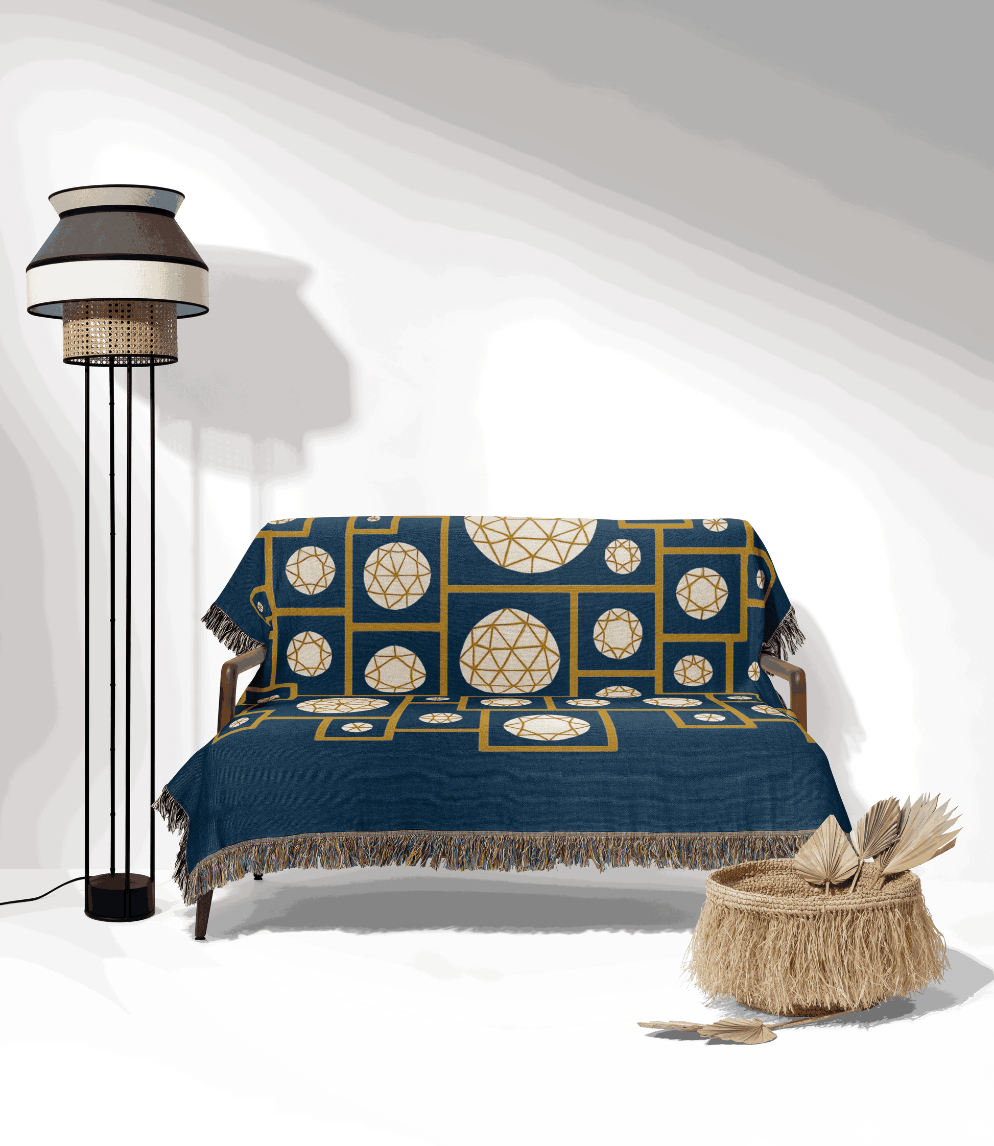 Wrap yourself in culture and comfort with this Geometric Heritage Woven Blanket, featuring a refined teal background and intricate gold geometric design. The pattern is inspired by the plis-shaped domes of the National Library of Kosovo, symbolizing knowledge, creativity, and Albanian identity through a modern folk-art lens.