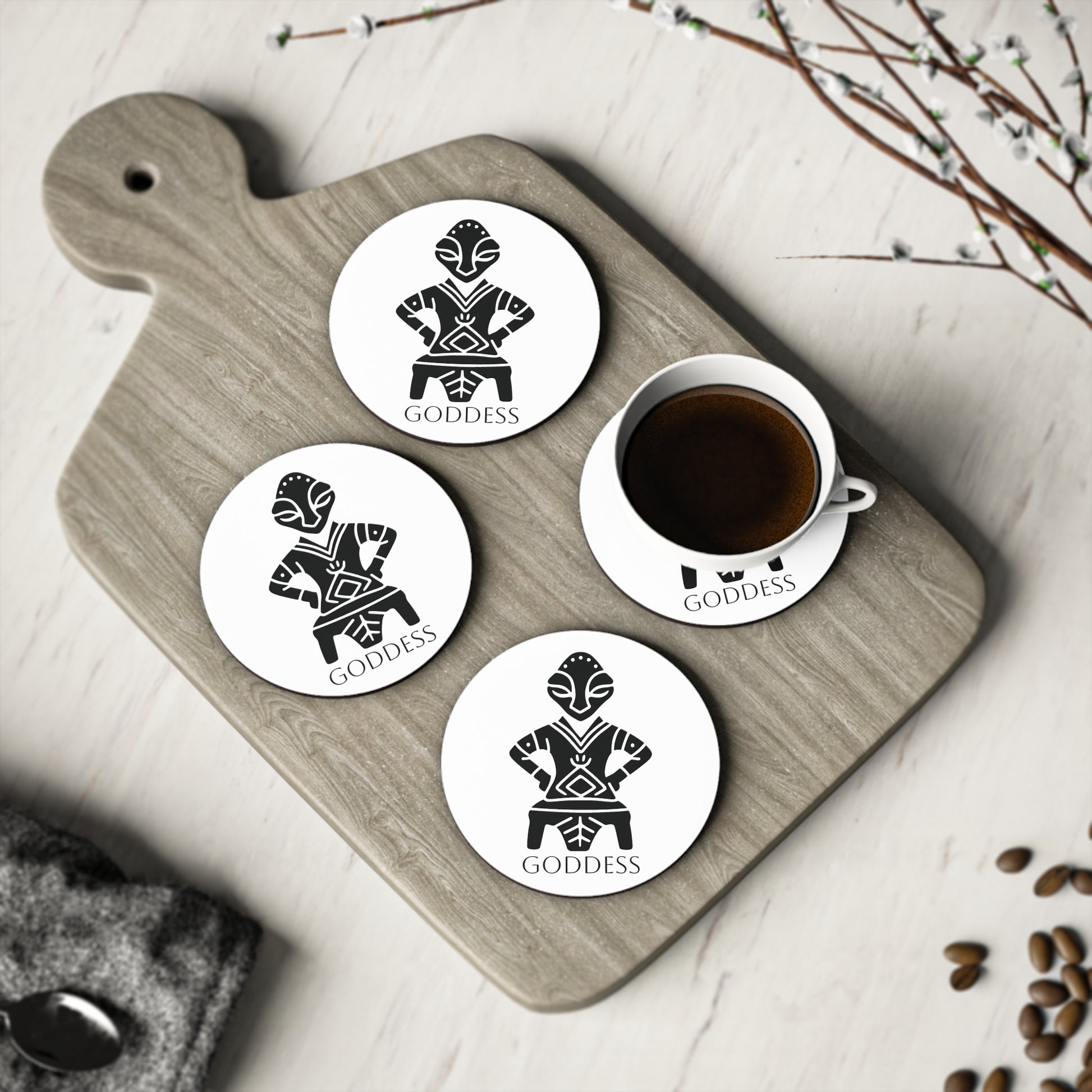 Illyrian Goddess Round Coasters, Ancient Kosovo Symbol, Unique Boho Decor, Drink Coasters for Home