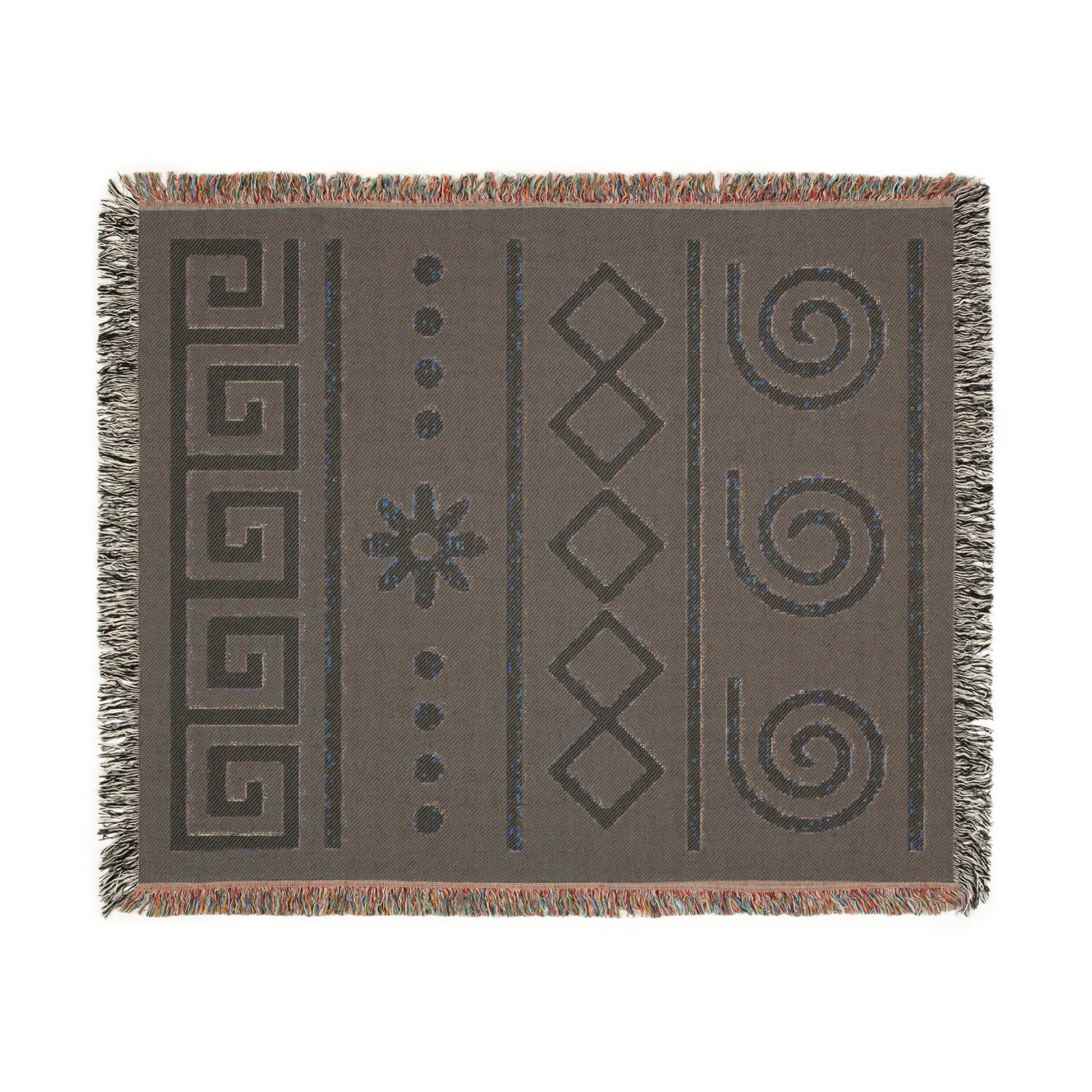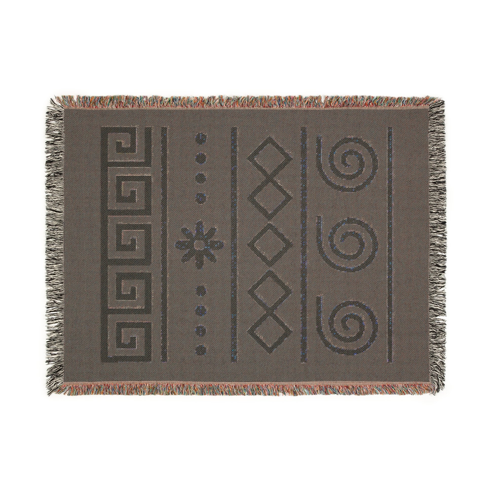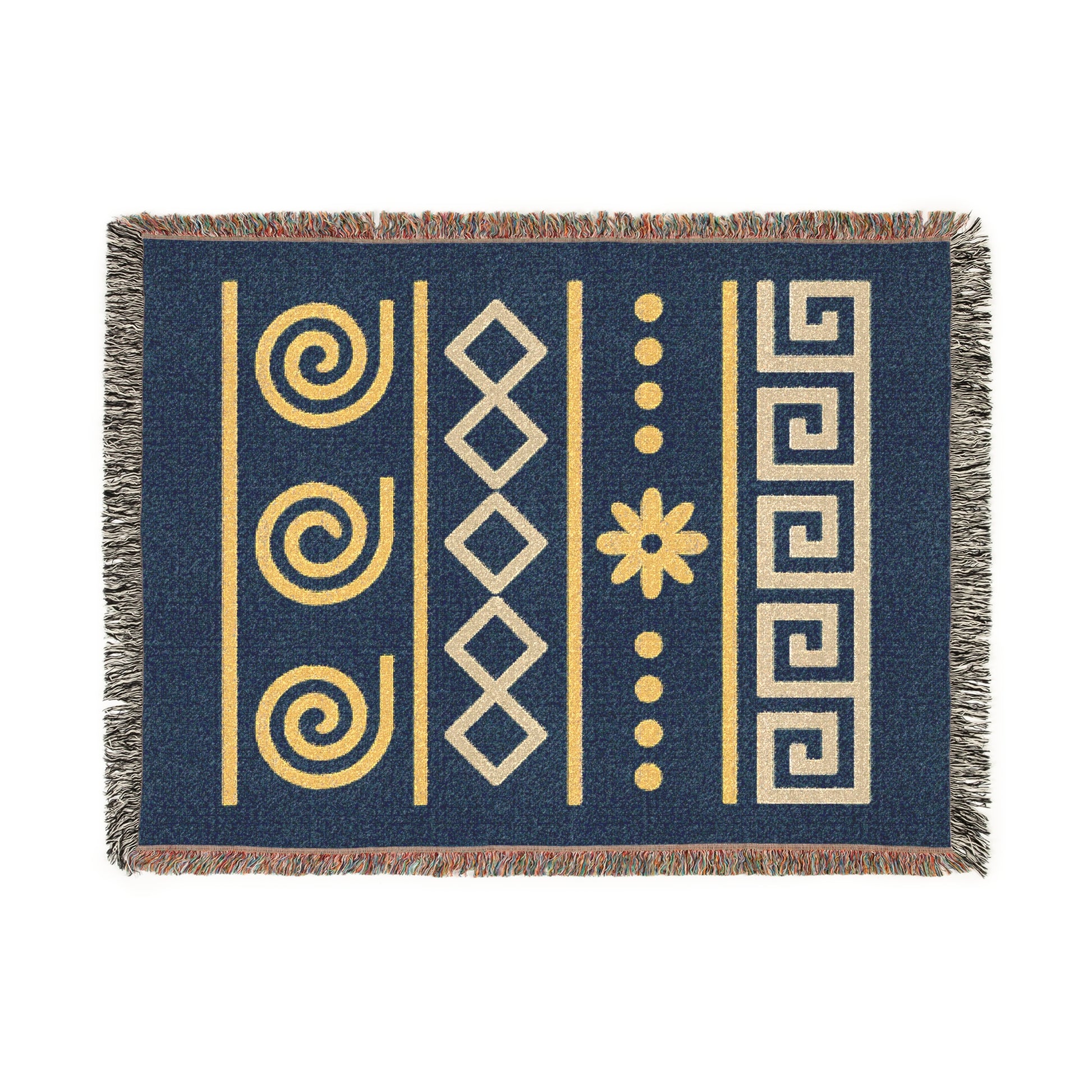 Illyrian Weave - Boho Golden Spiral Woven Throw Blanket in Ochre & Deep Blue