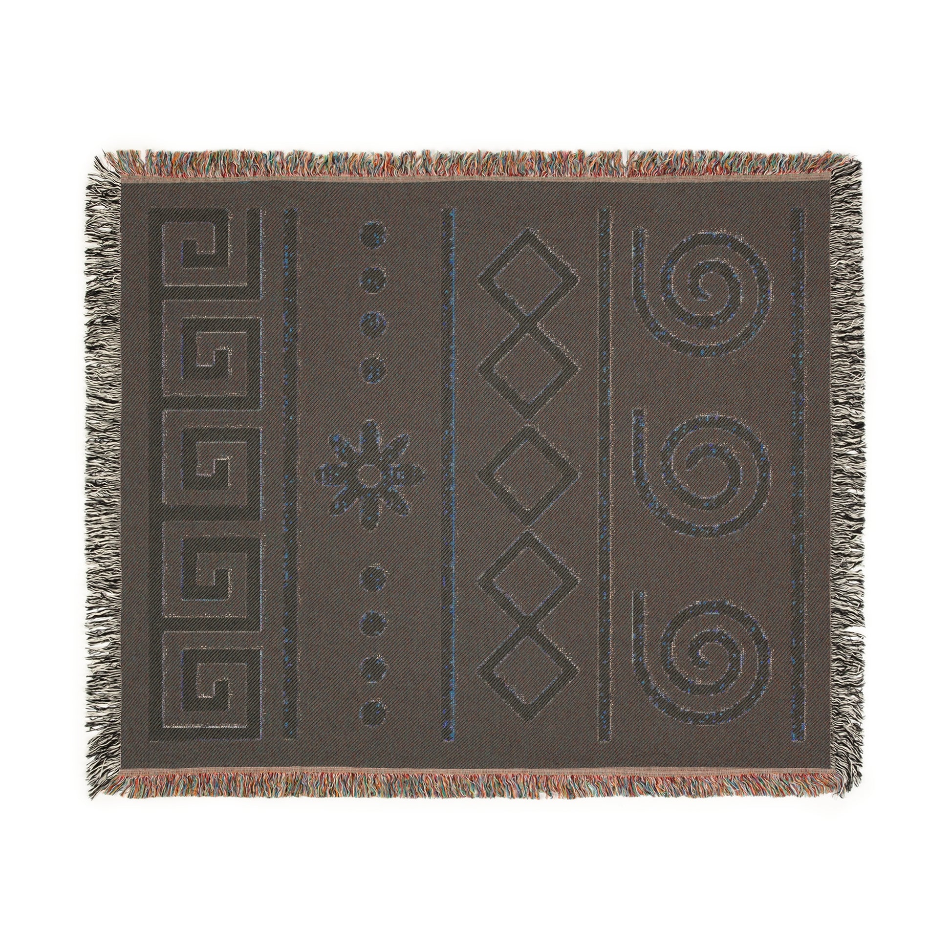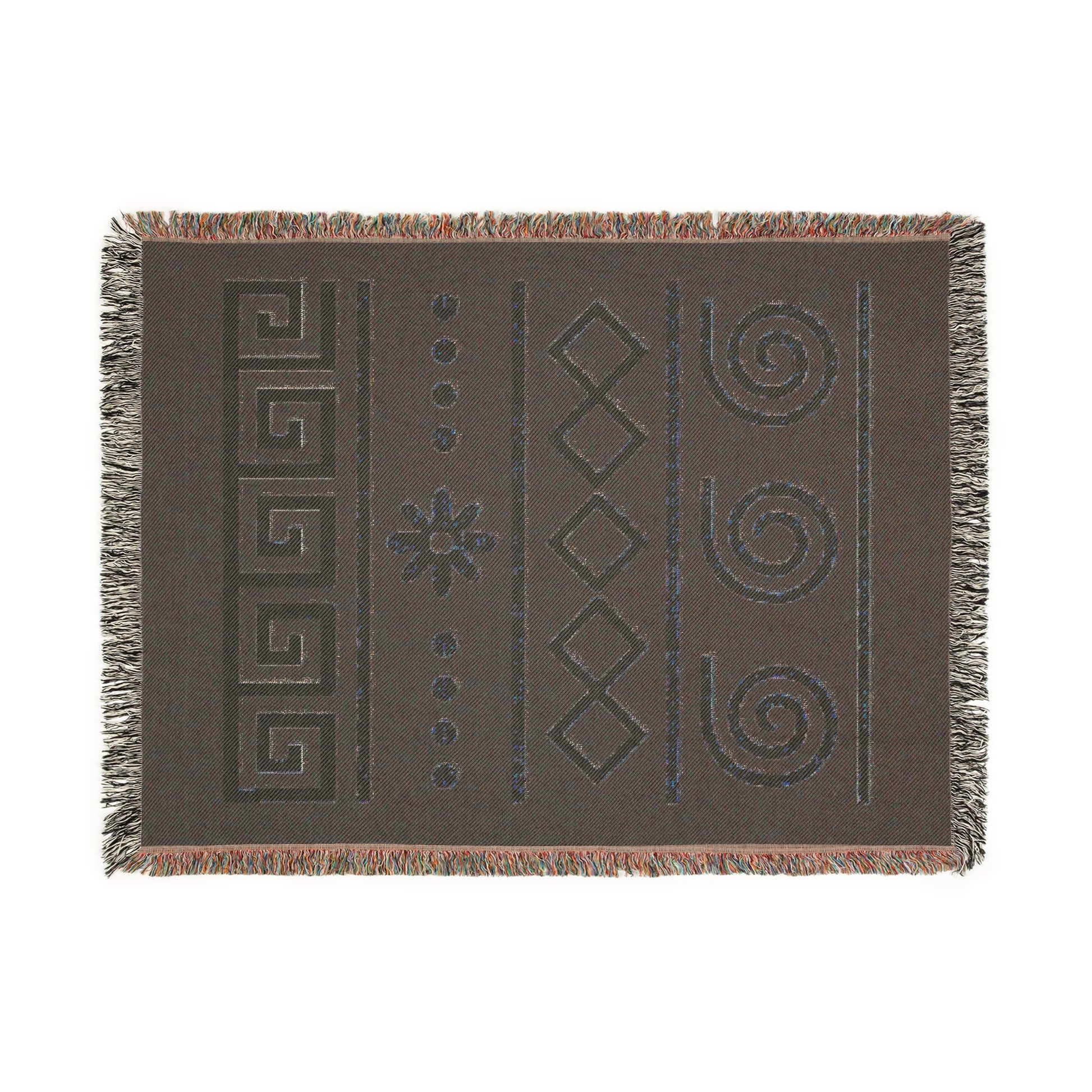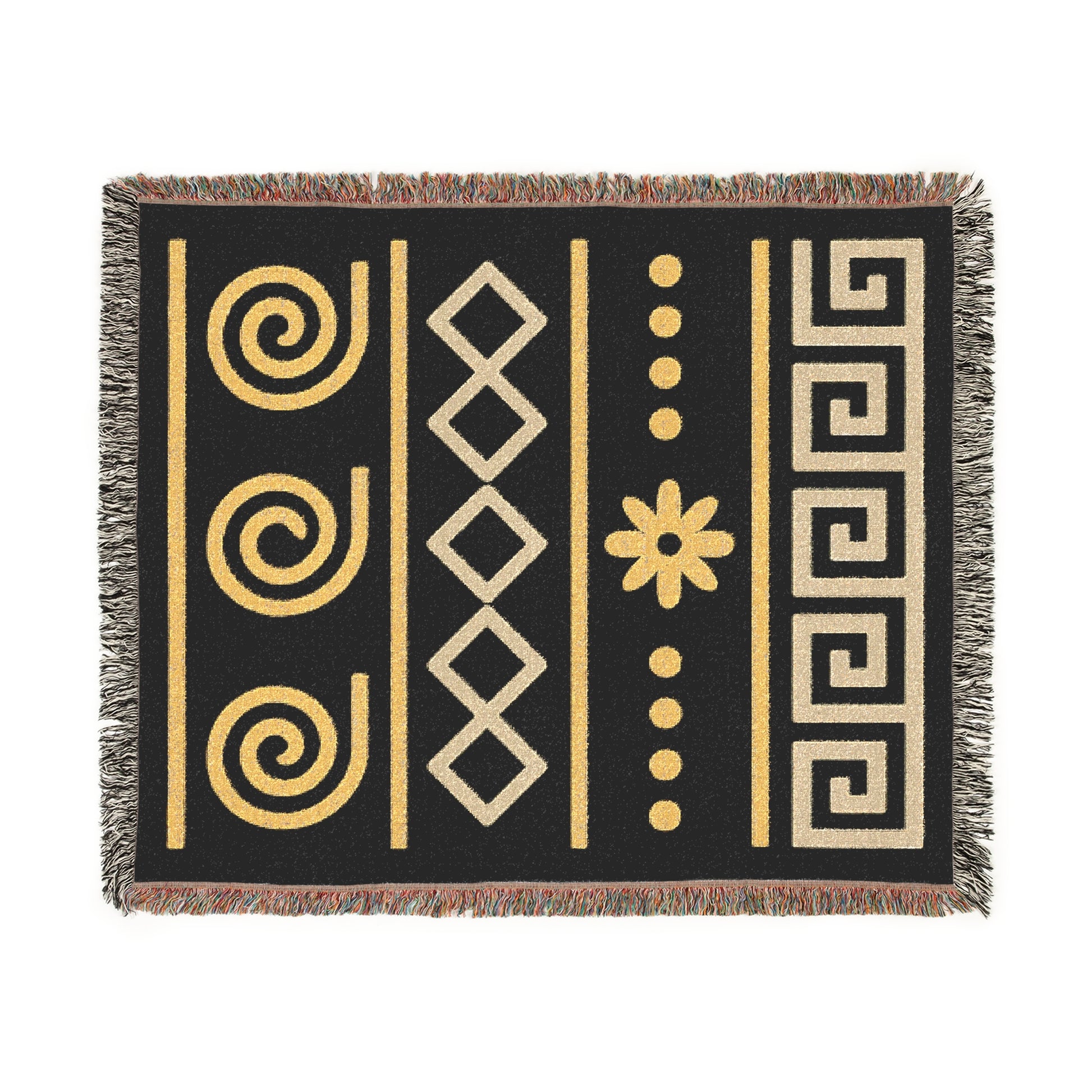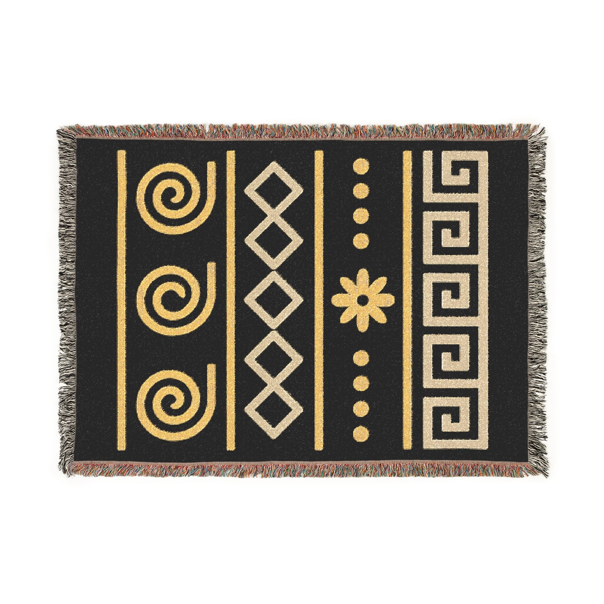 Illyrian Weave - Boho Golden Spiral Woven Throw Blanket in Ochre & Onyx
