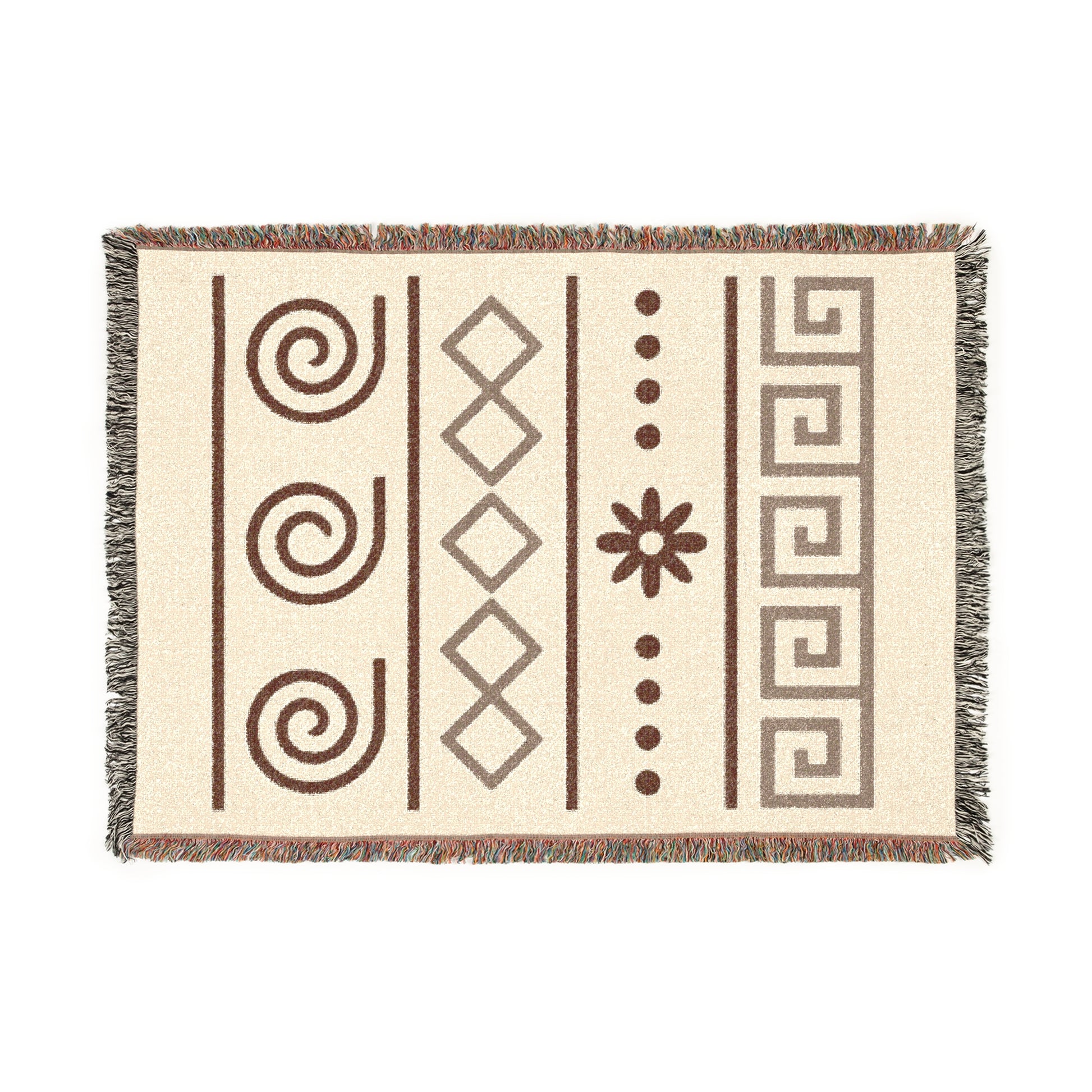 Inspired by ancient Illyrian spiral and floral motifs, this woven cotton throw brings together soft geometric forms and earthy tones for a calm, grounding aesthetic. The taupe spirals, diamonds, and dotted flower pattern create a soothing rhythm across a warm cream background, giving the piece a minimalist boho feel that fits beautifully in modern or rustic spaces. Soft yet durable, it drapes effortlessly over your sofa, bed, or outdoor seating. Expertly woven from premium cotton, it blends heritage craftsmanship with modern comfort and is fully machine-washable for easy care.