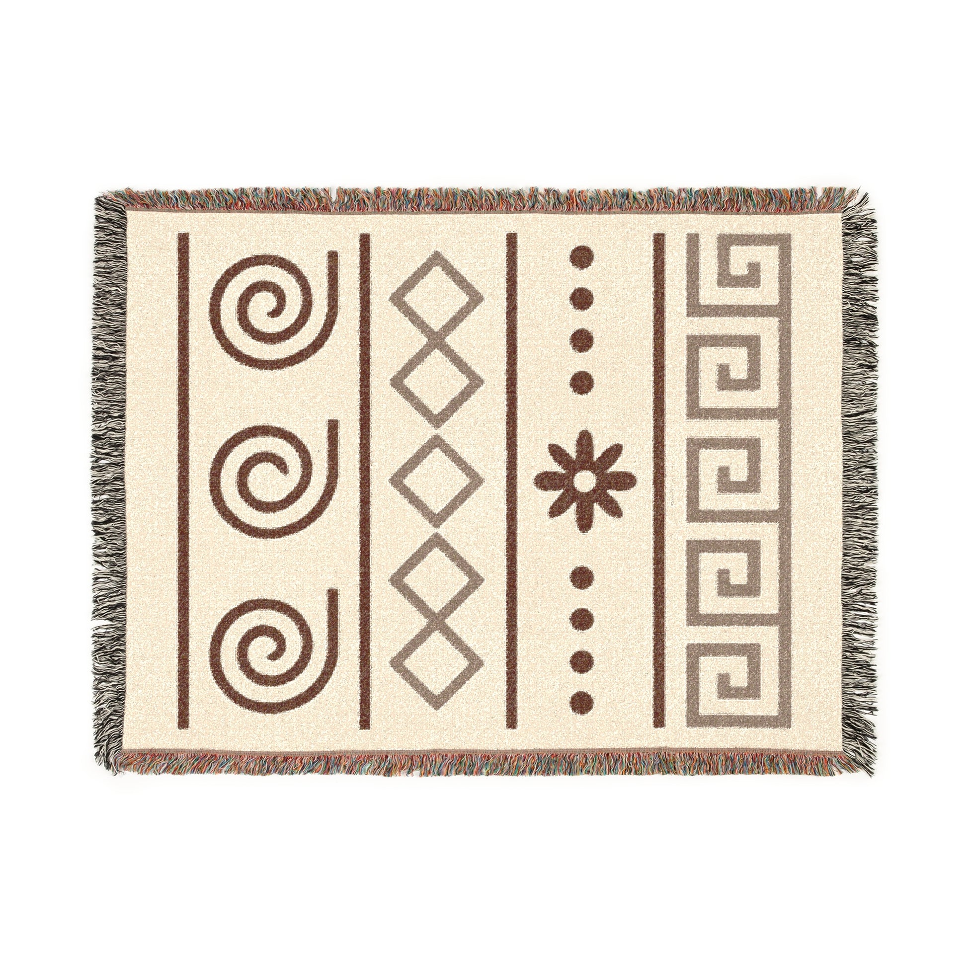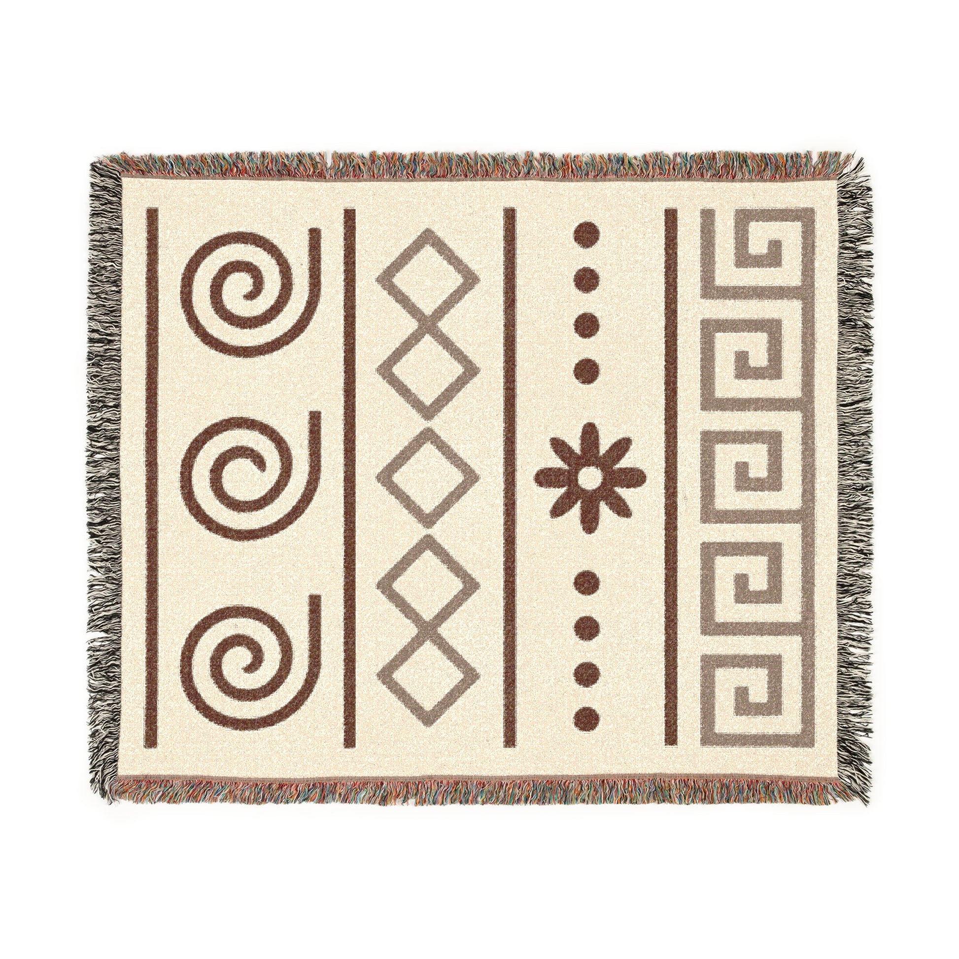 Illyrian Weave - Boho Spiral Harmony Woven Throw Blanket in Taupe & Cream