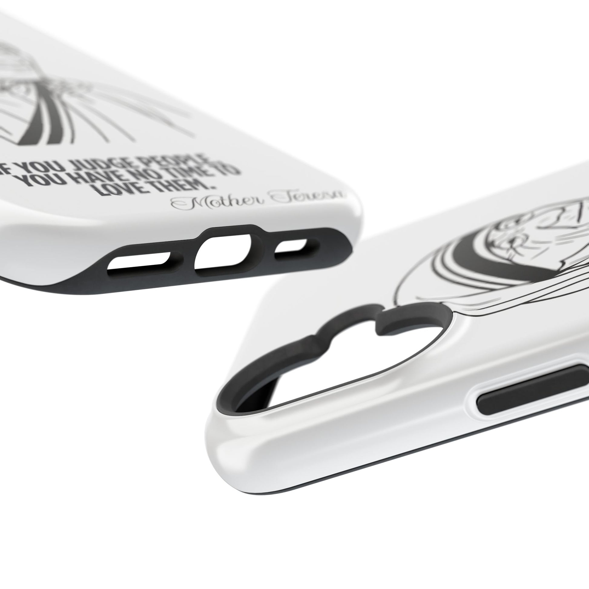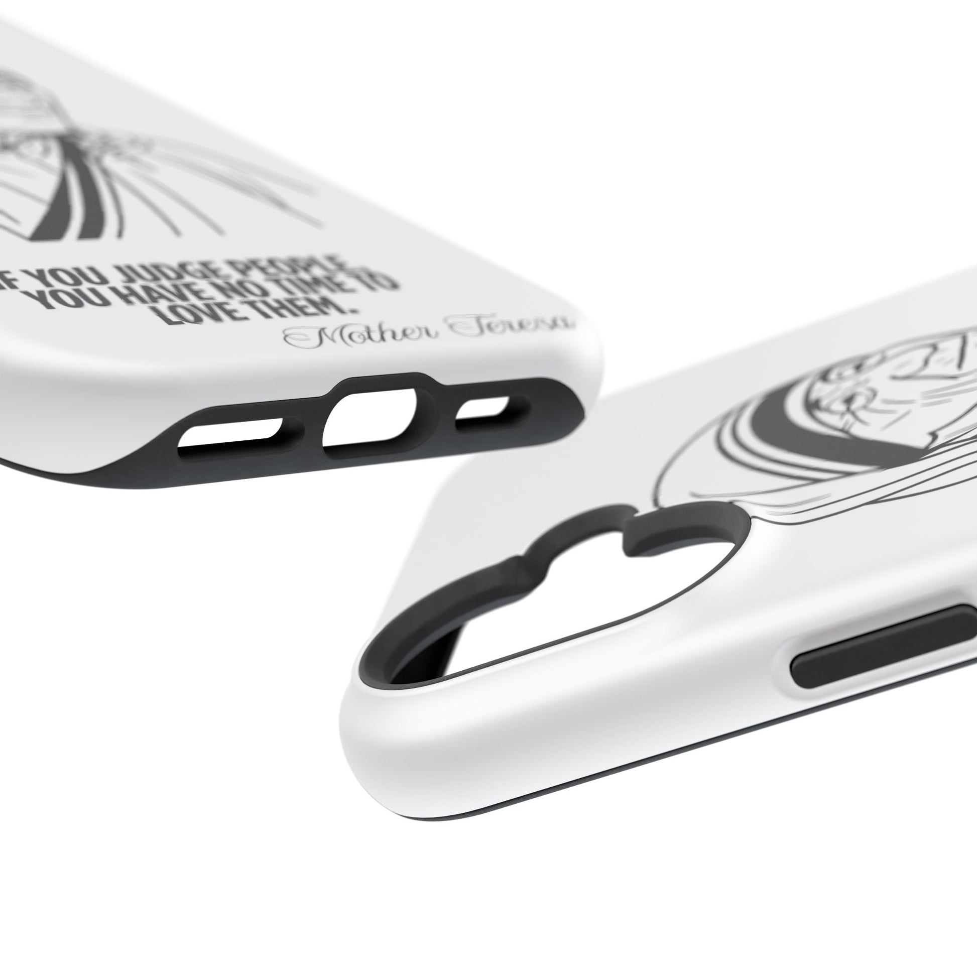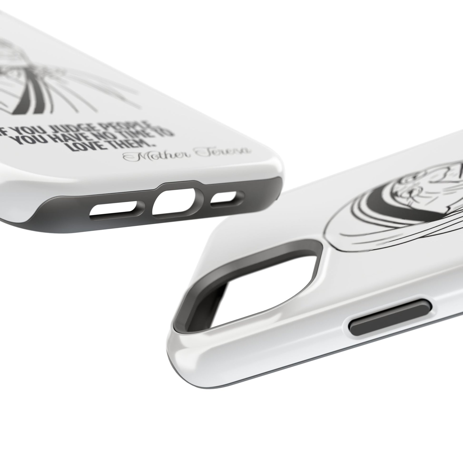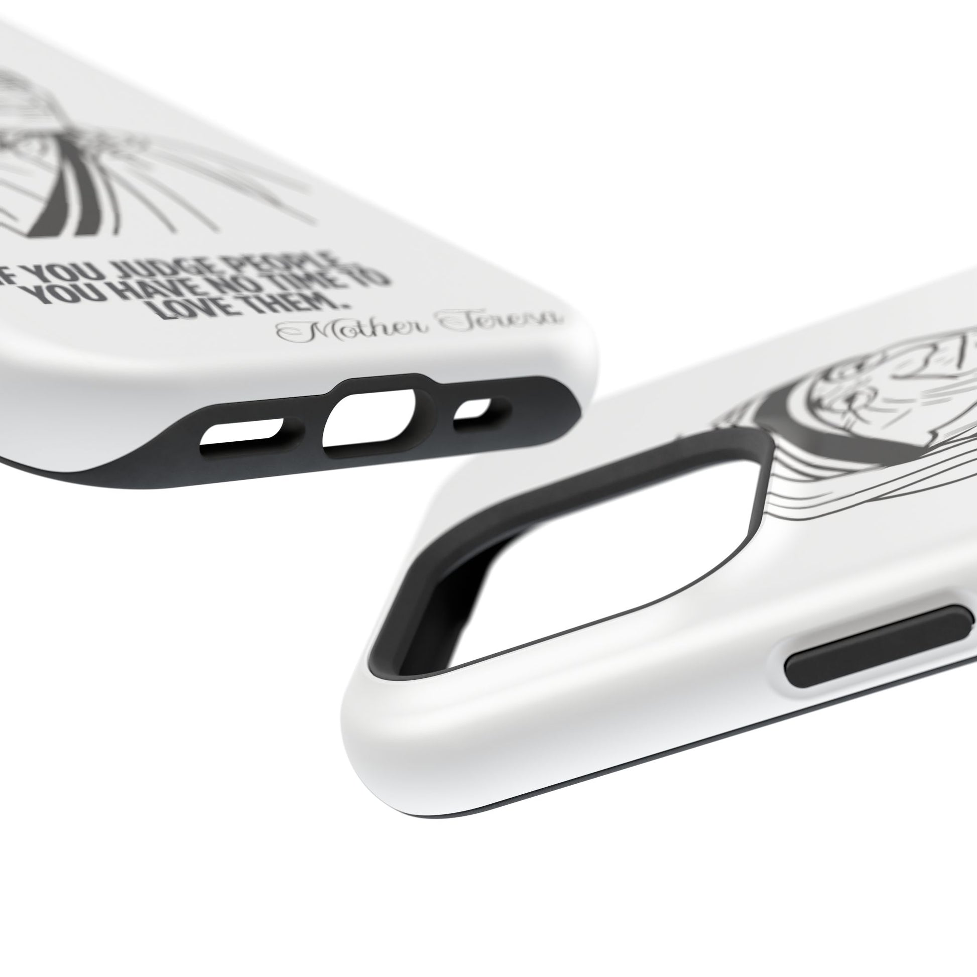 Elevate your iPhone's style while carrying a powerful message with our exclusive Mother Teresa iPhone case. Designed for models iPhone 13 to 16, this case features the inspirational quote: "If you judge people, you have no time to love them."