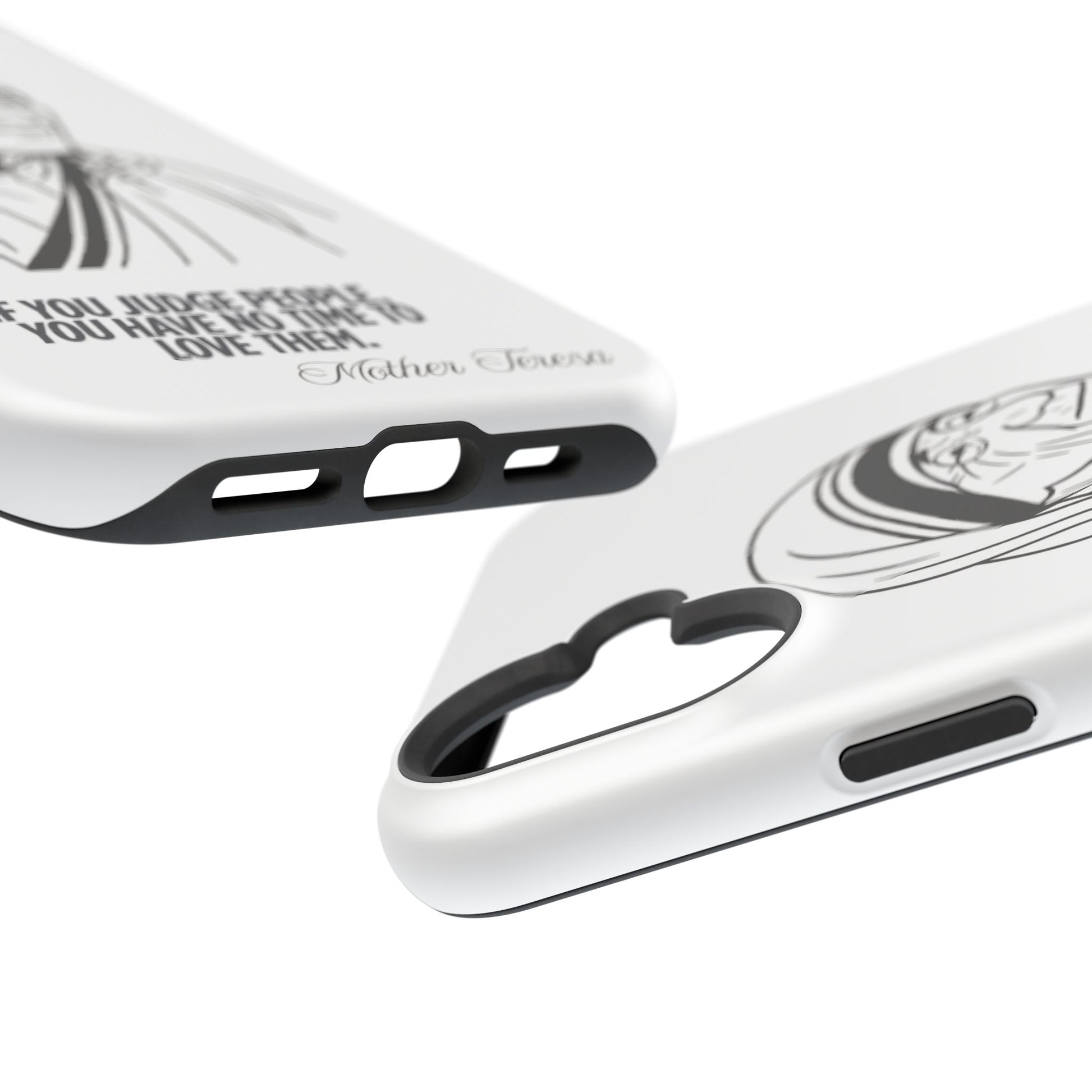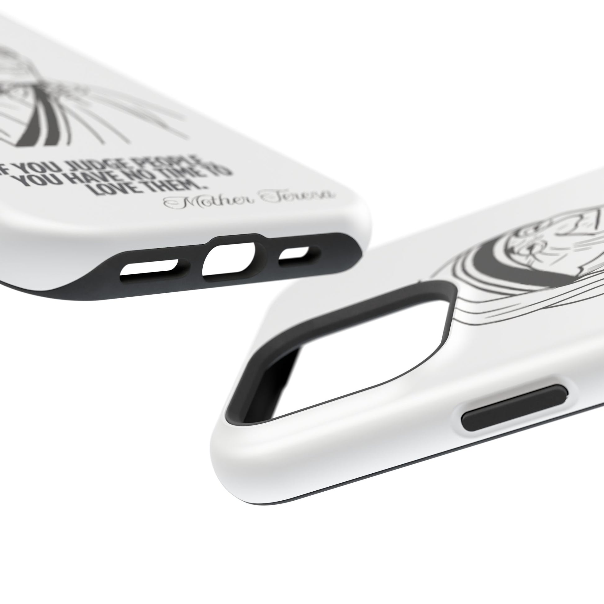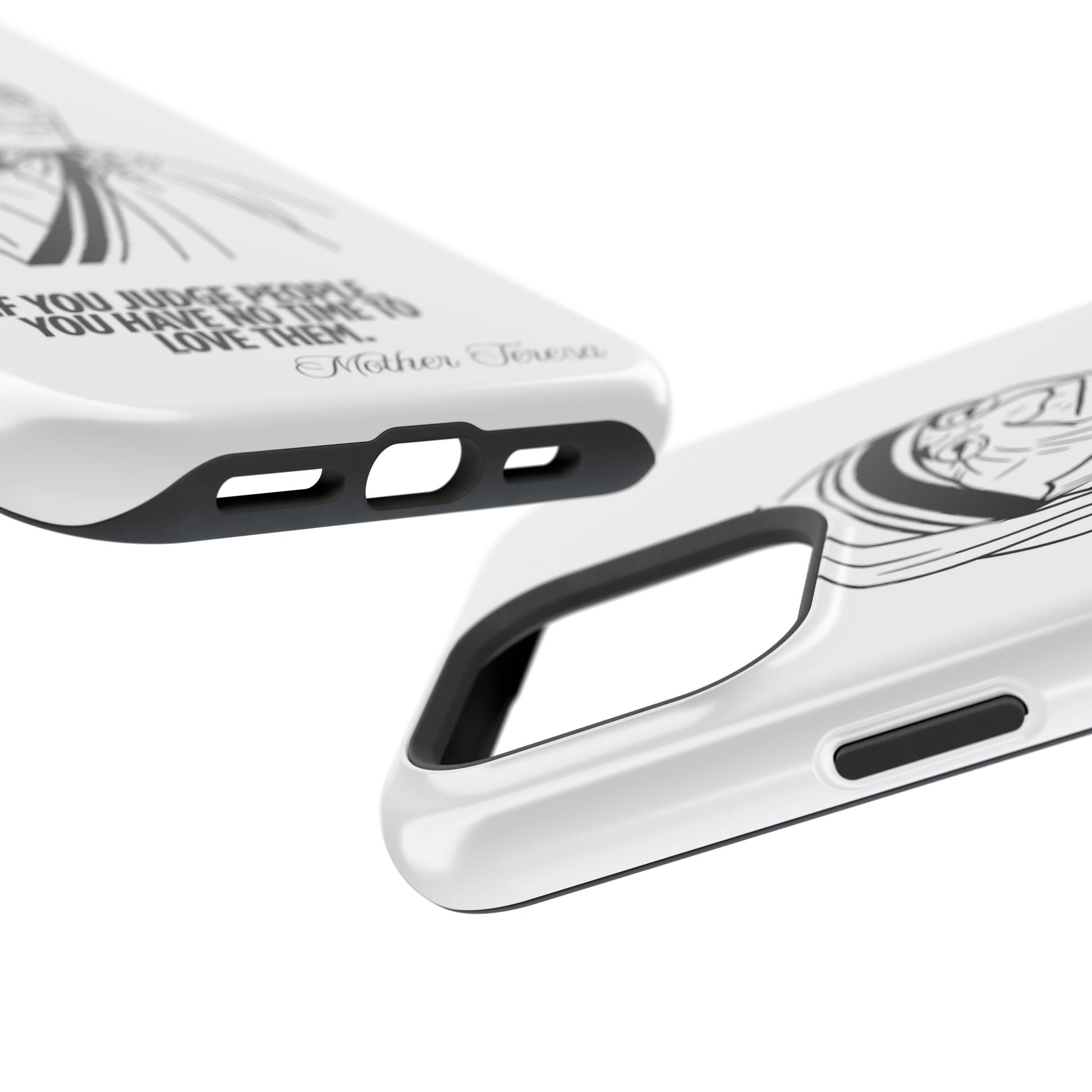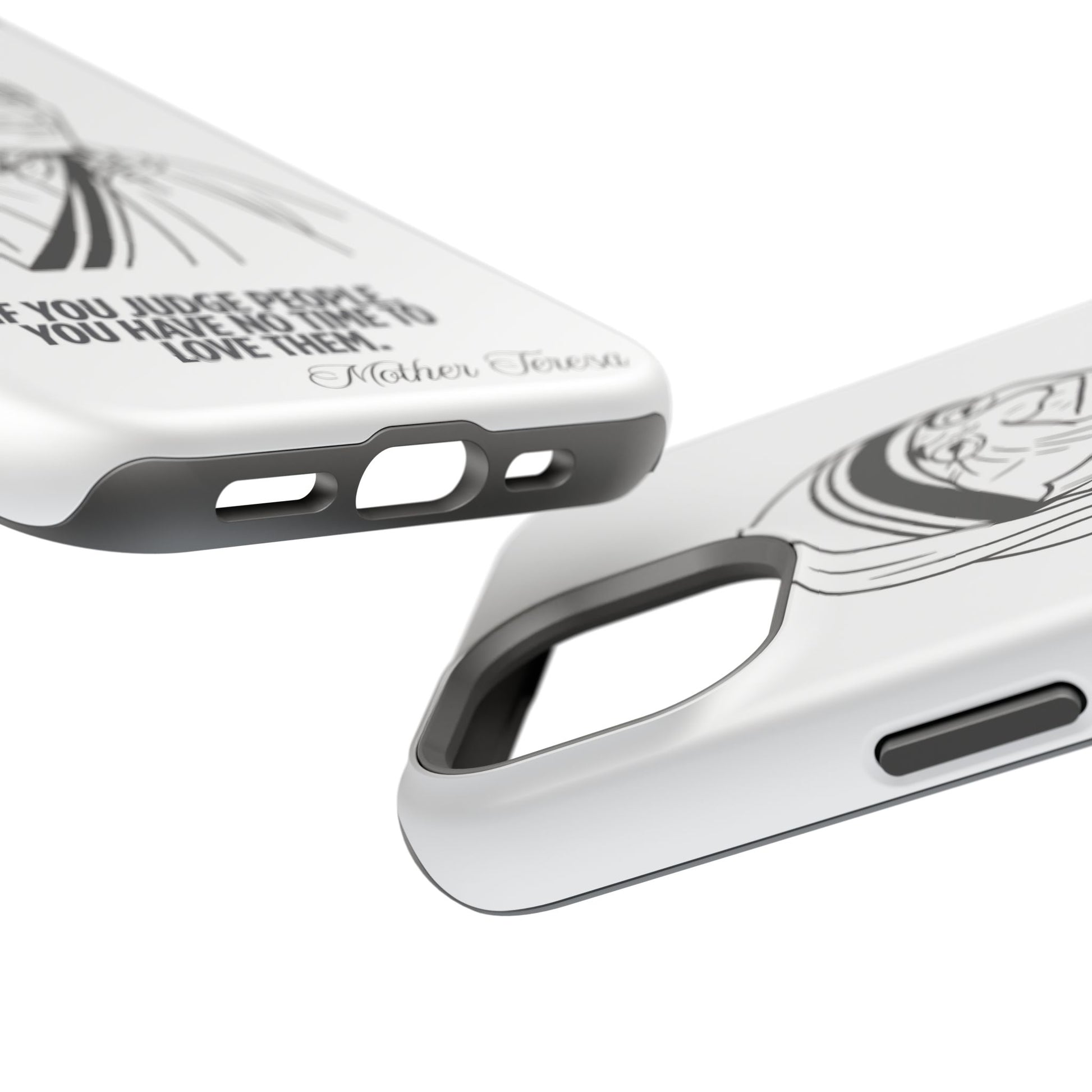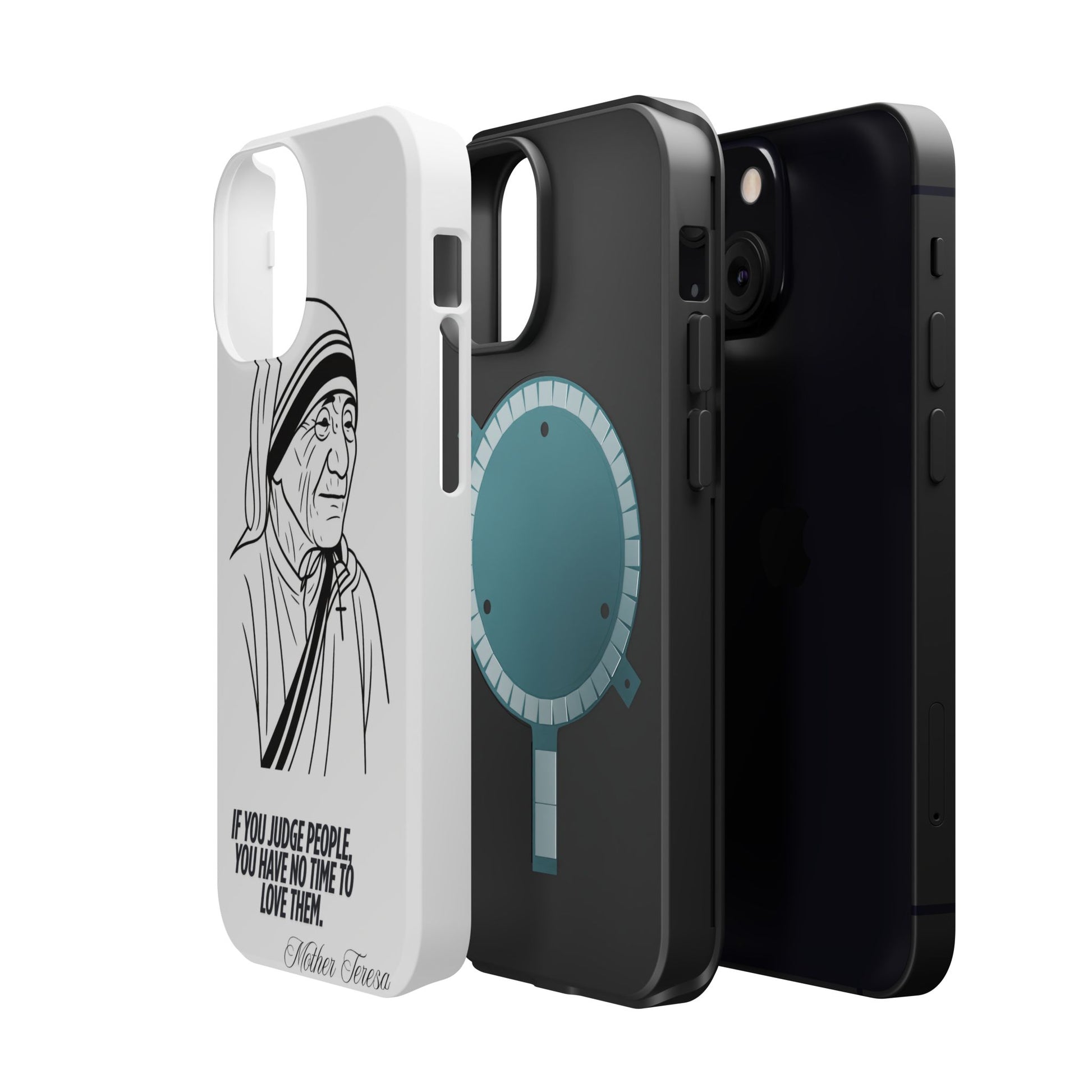 Elevate your iPhone's style while carrying a powerful message with our exclusive Mother Teresa iPhone case. Designed for models iPhone 13 to 16, this case features the inspirational quote: "If you judge people, you have no time to love them."
