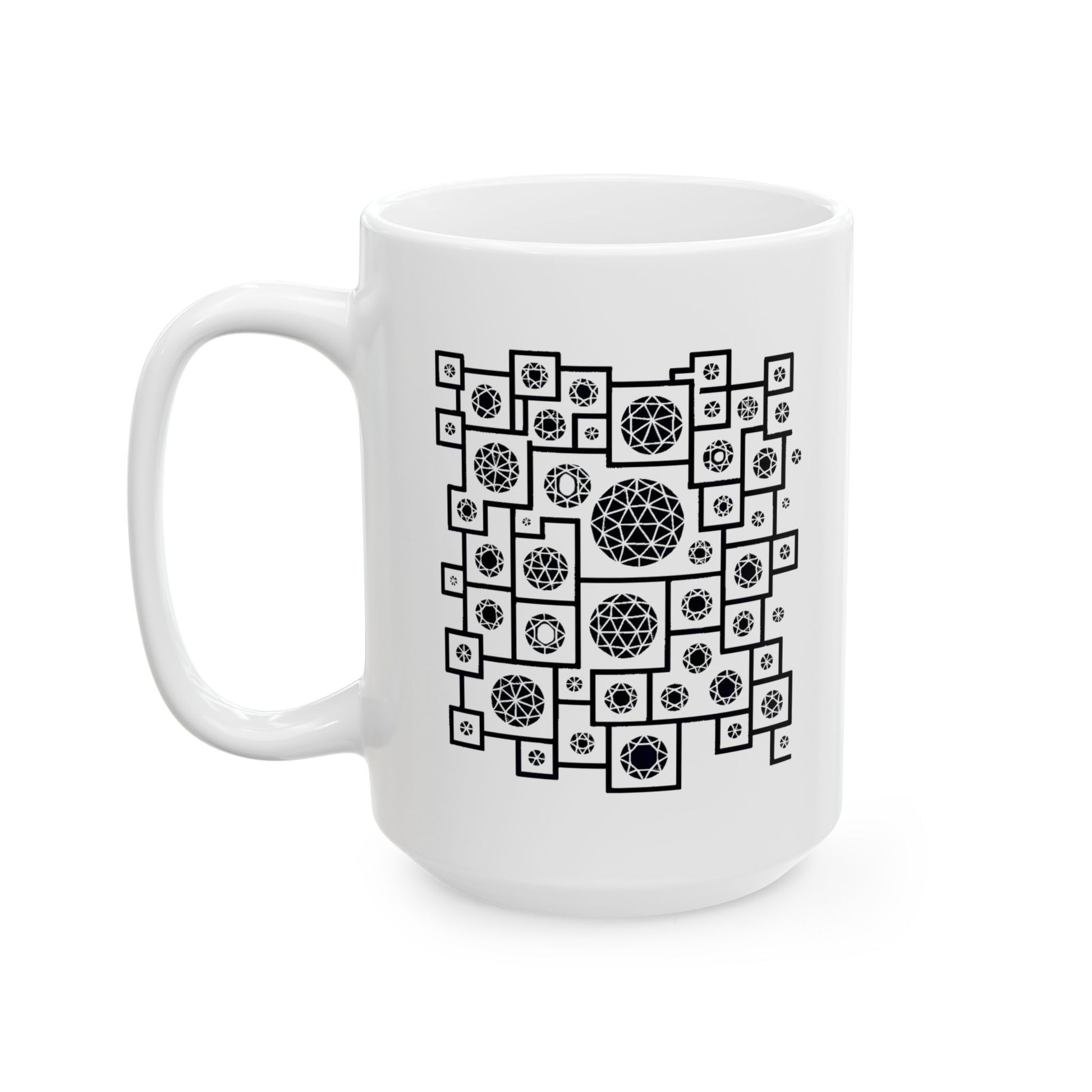 A ceramic mug featuring a design inspired by the National Library of Kosovo. This mug is perfect for book lovers, students, and anyone who appreciates architectural landmarks. Ideal for sipping hot beverages while studying or reading. Great for gifting on World Book Day or International Literacy Day.