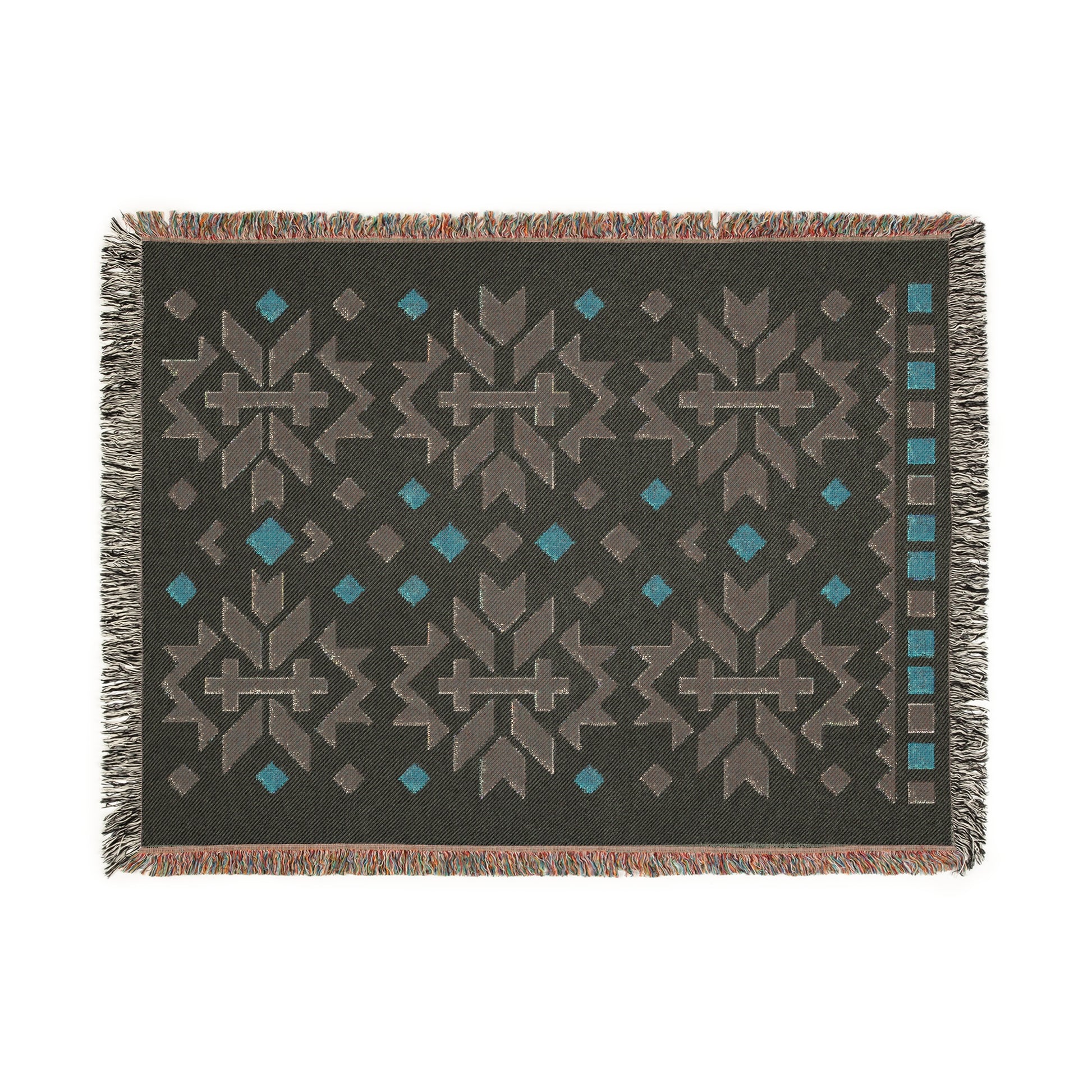 Navy, Gold & Cream Boho Folk Cross Pattern Woven Throw Blanket - Illyrian Weave