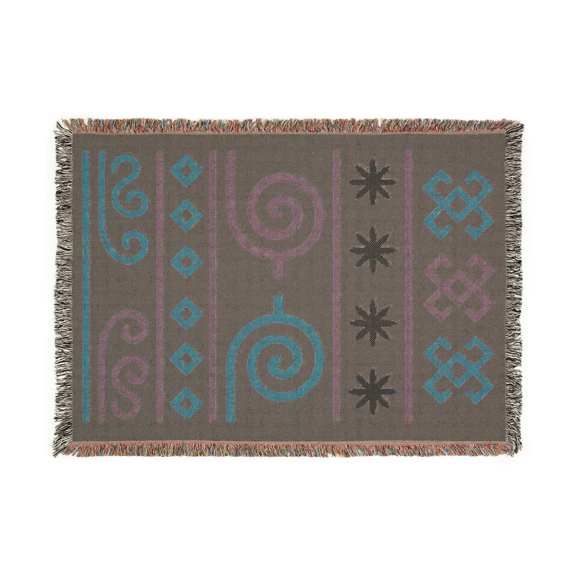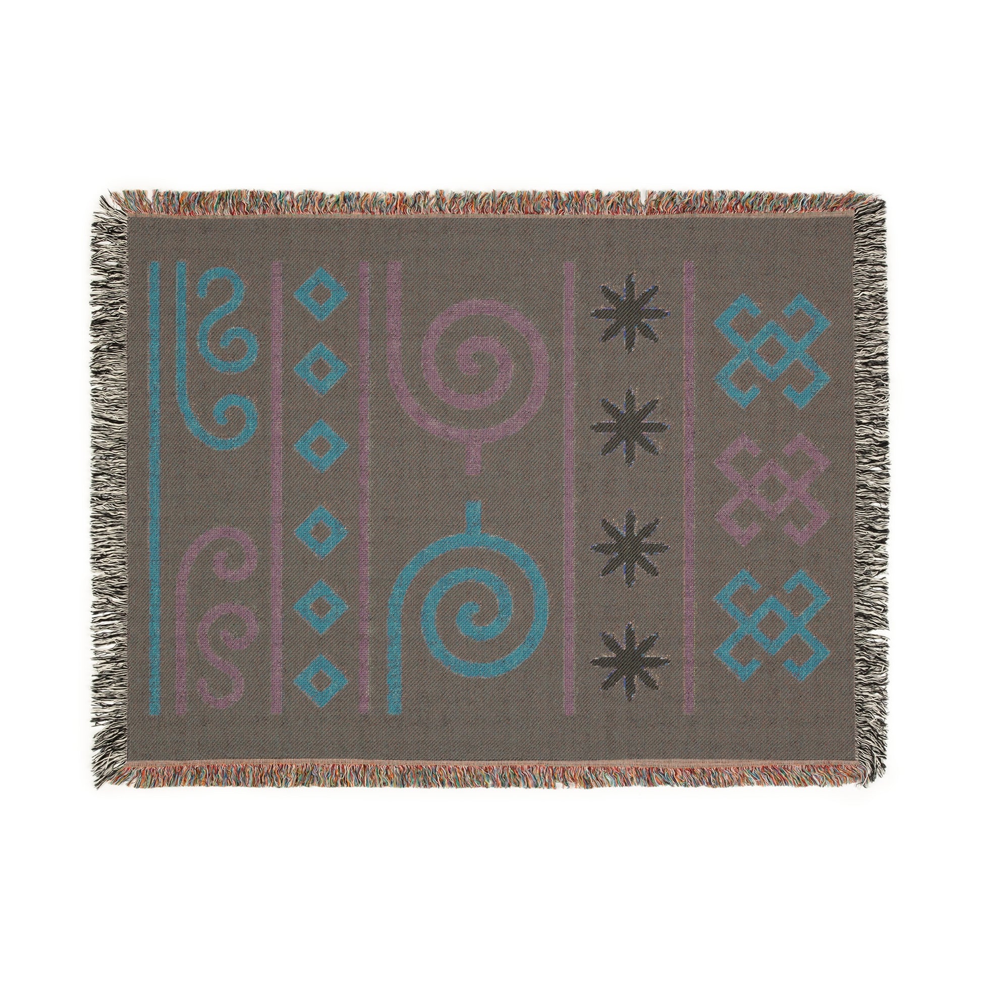 Navy, Terracotta & Sage Boho Tribal Symbol Woven Throw Blanket - Illyrian Weave